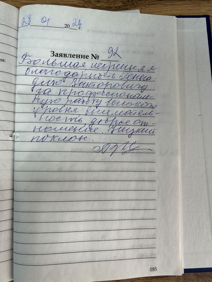 Большая искренняя благодарность Геннадию Викторовичу за профессиональную работу высокого уровня. Внимательность, доброе отношение. Низкий поклон.