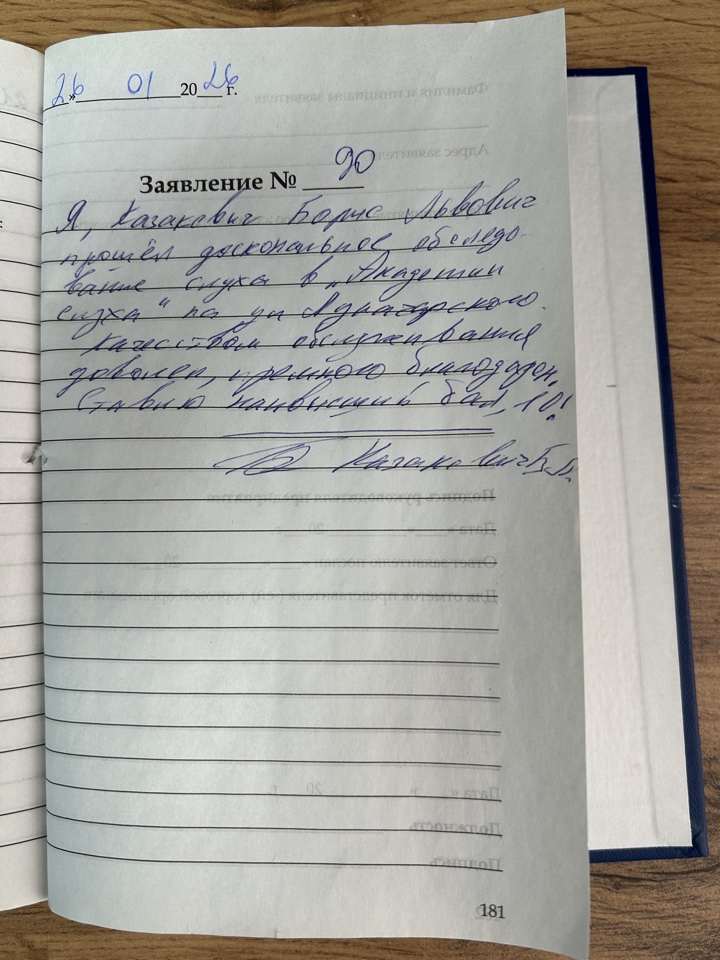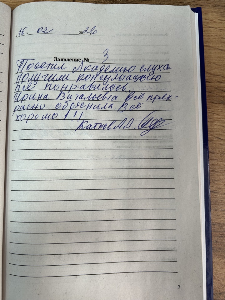 Посетил Академию слуха получили консультацию все понравилось. Ирина Витальевна все прекрасно объяснила, все хорошо.