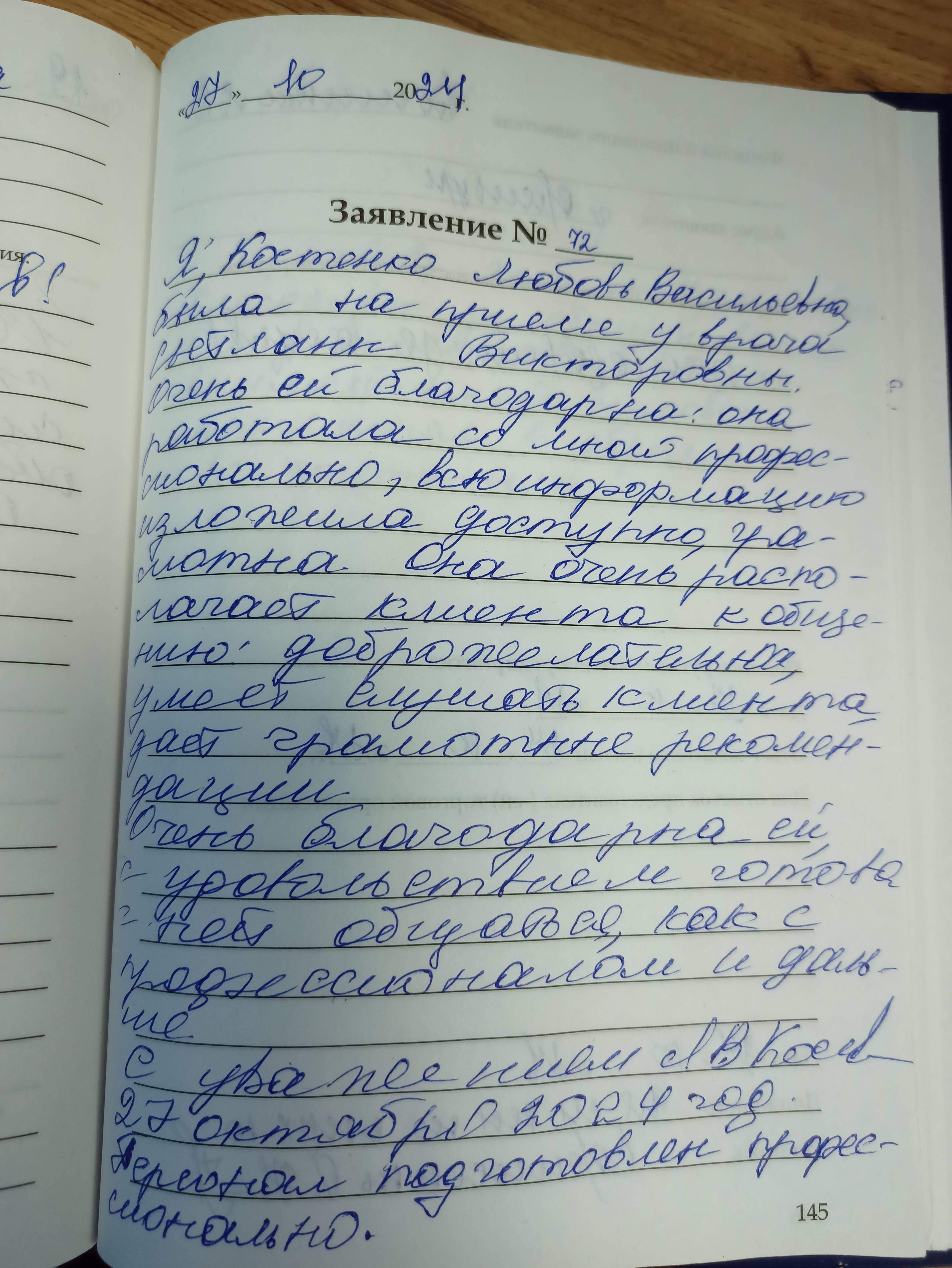 Я, Костенко Любовь Васильевна, была на приёме у врача Светланы Викторовны. Очень ей благодарна , она работала со мной профессионально, всю информацию изложили доступно, грамотно. Она очень располагает клиента к общению, доброжелательна, умеет слушать клиента, даёт грамотные рекомендации.Очень благодарна ей, с удовольствием готова с ней общаться как с профессионалом и дальше. С уважением Костенко Л.В.27 октября 2024. Персонал подготовлен профессионально.