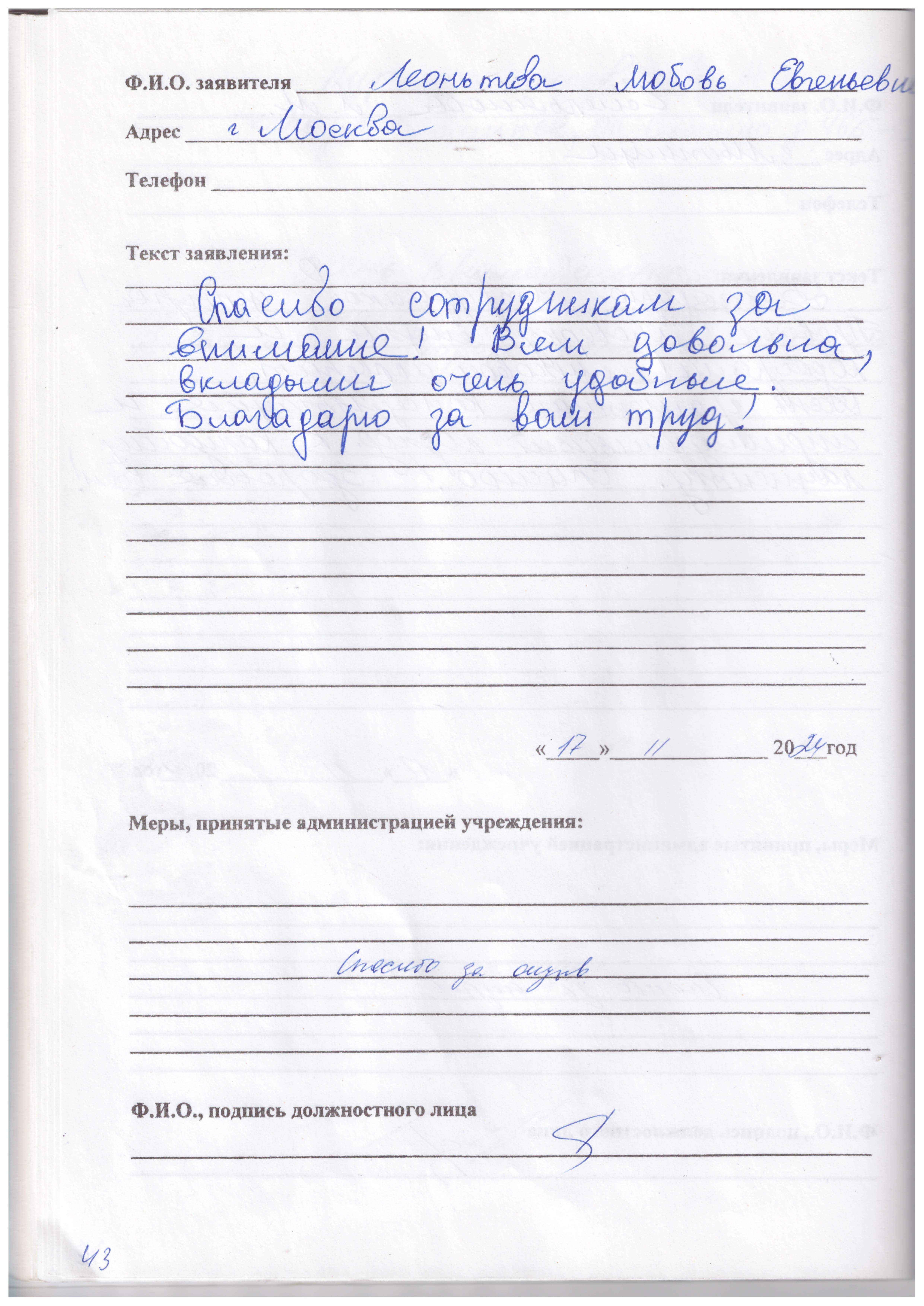 Спасибо сотрудникам за внимание! Всем довольна,вкладыши очень удобные.Благодарю за ваш труд!