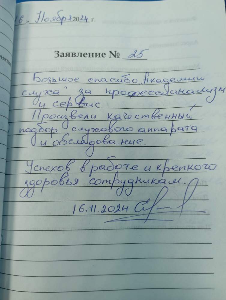 Большое спасибо «Академии слуха» за профессионализм и сервис.