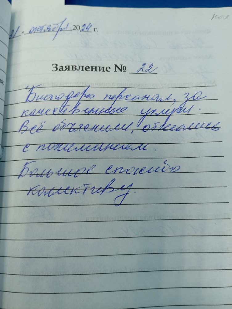 Благодарю персонал, за качественные услуги. Все объяснили, отнеслись с пониманием.