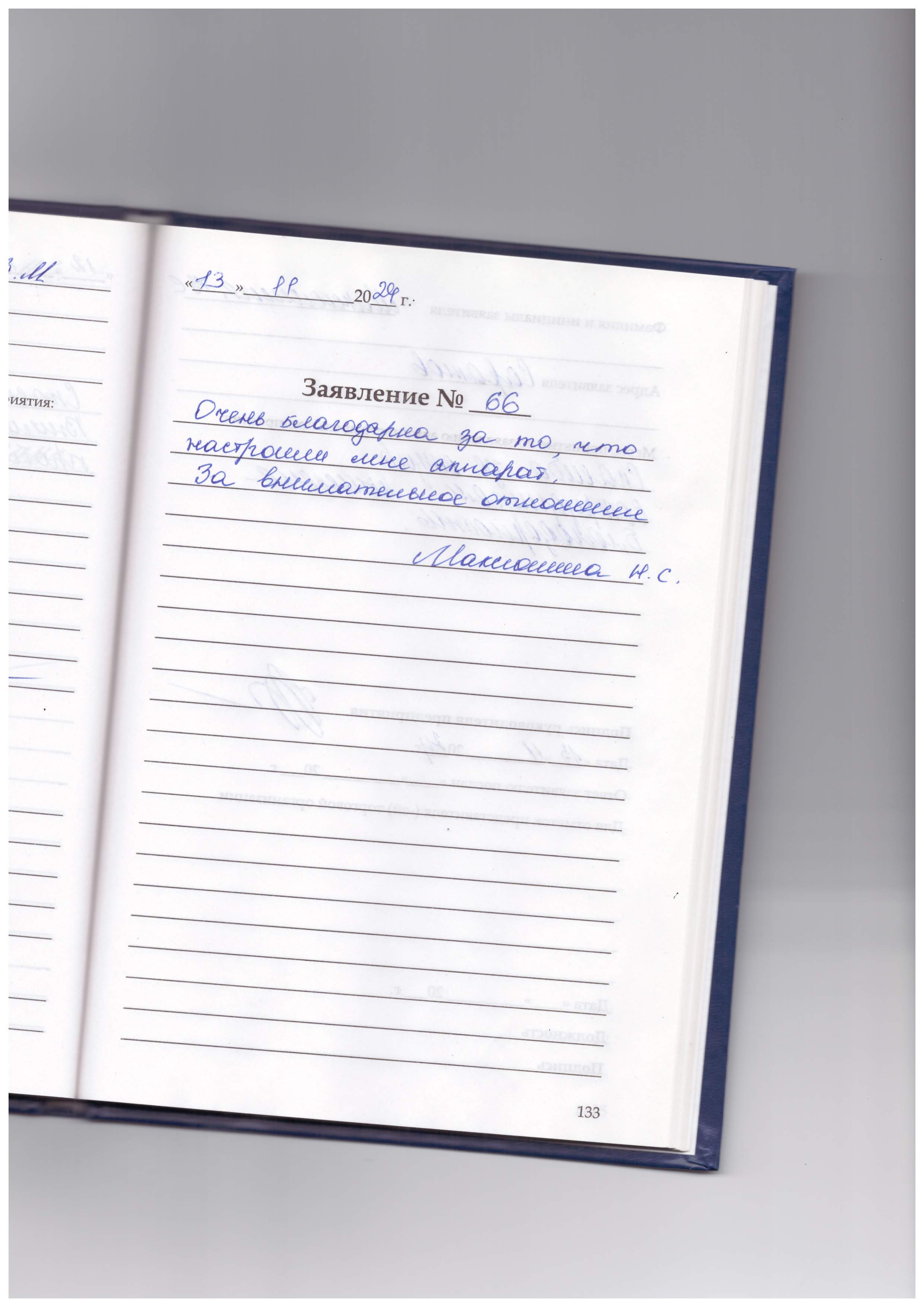 Очень благодарна за то что настроили мне аппарат. За внимательное отношение . Максюшина Н.С