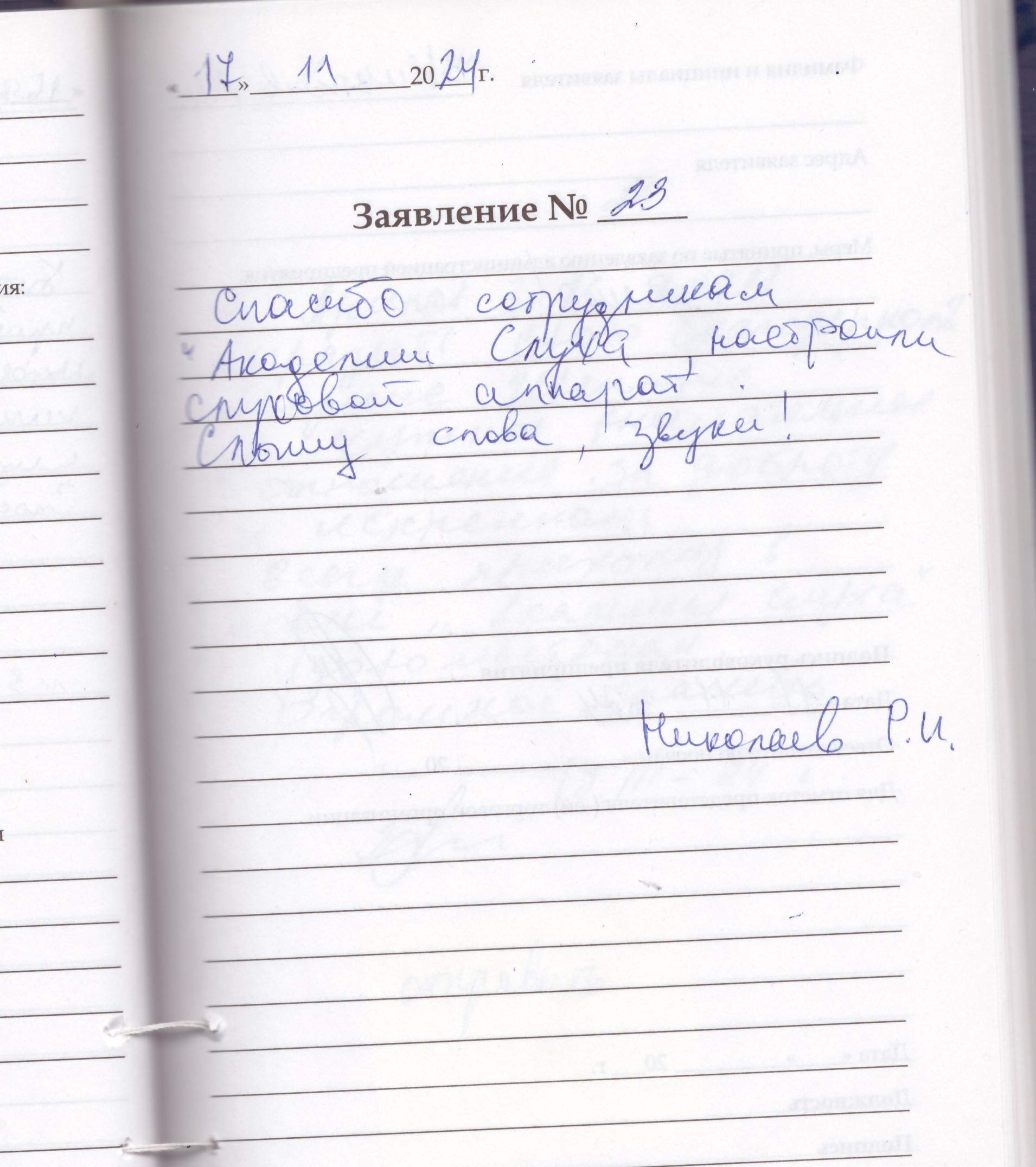 Спасибо сотрудникам "Академии СлухА", настроили слуховой аппарат. слышу слова, звуки!