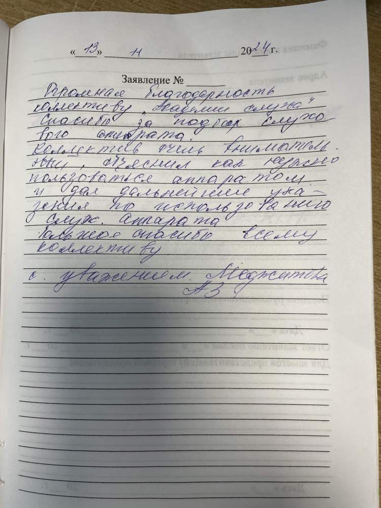 Огромная благодарность коллективу Академии слуха. Спасибо за подбор слухового аппарата. Коллектив очень внимательный, объяснил, как нужно пользоваться аппаратом и дал дальнейшие указания по использованию слухового аппарата. Большое спасибо всему коллективу. С уважением Меджитова А.З.
