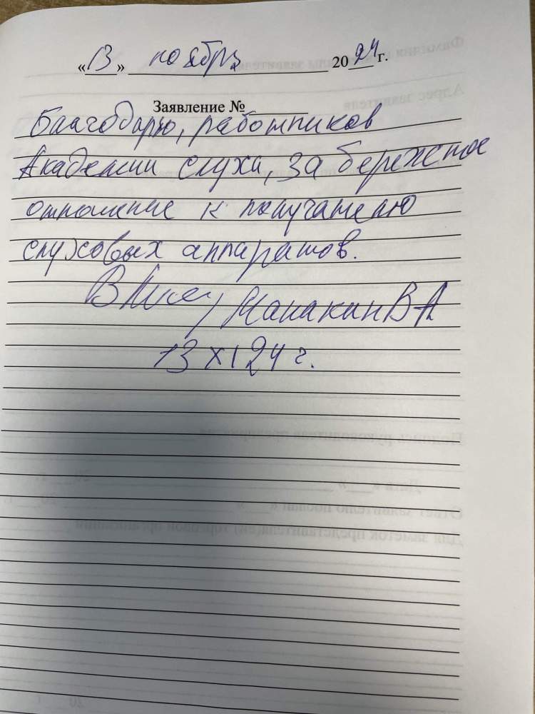 Благодарю работников Академии слуха за бережное отношение к получателю слуховых аппаратов. Манакин В.А.