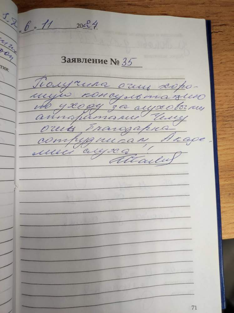 Получила очень хорошую консультацию по уходу за слуховыми аппаратами. Чему очень благодарна сотрудникам, Академии слуха!