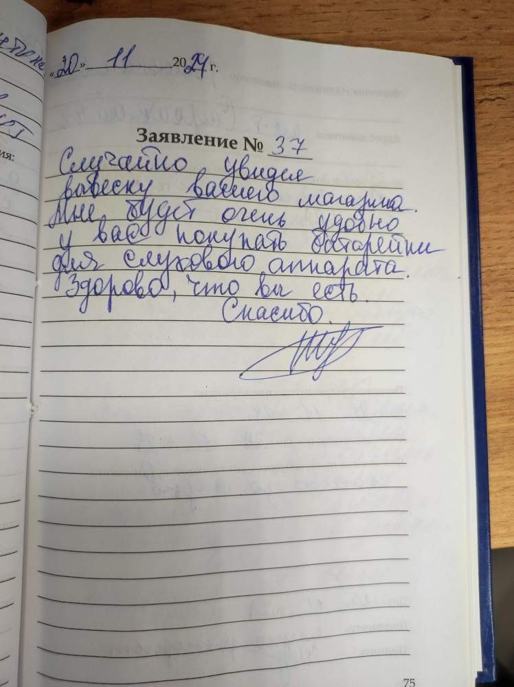 Случайно увидел вывеску вашего магазина. Мне будет очень удобно у вас покупать батарейки для слухового аппарата. Здорово, что вы есть. Спасибо.