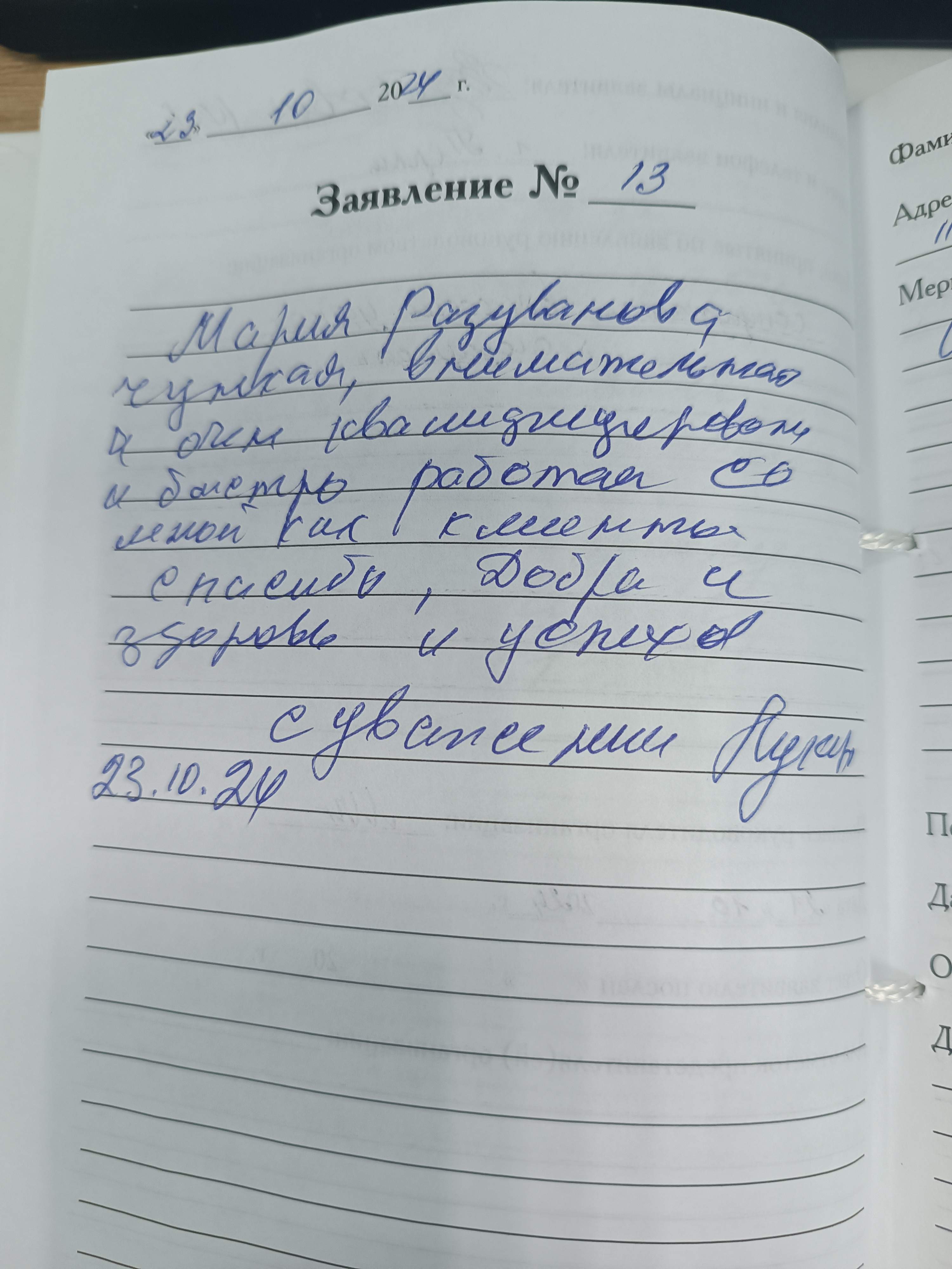 Мария Разуванова чуткая, внимательная и очень квалифицированная и быстро работала со мной как с клиентом. Спасибо, добра и здоровья и успехов.