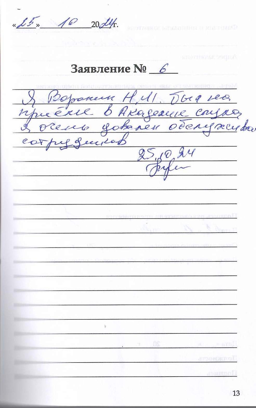 Я, Воронин Н.М., был на приеме в "Академии слуха". Я очень доволен обслуживанием сотрудников.