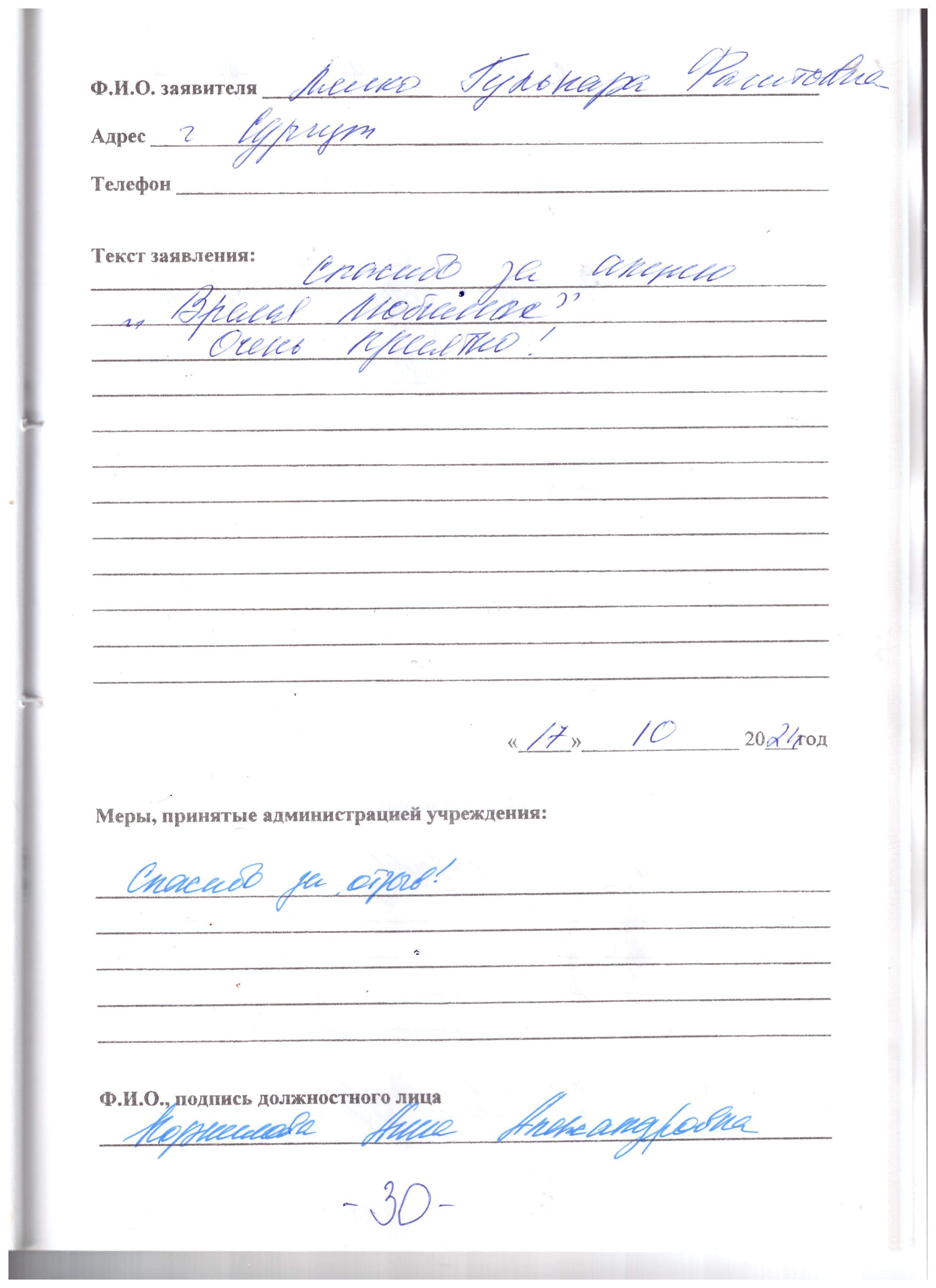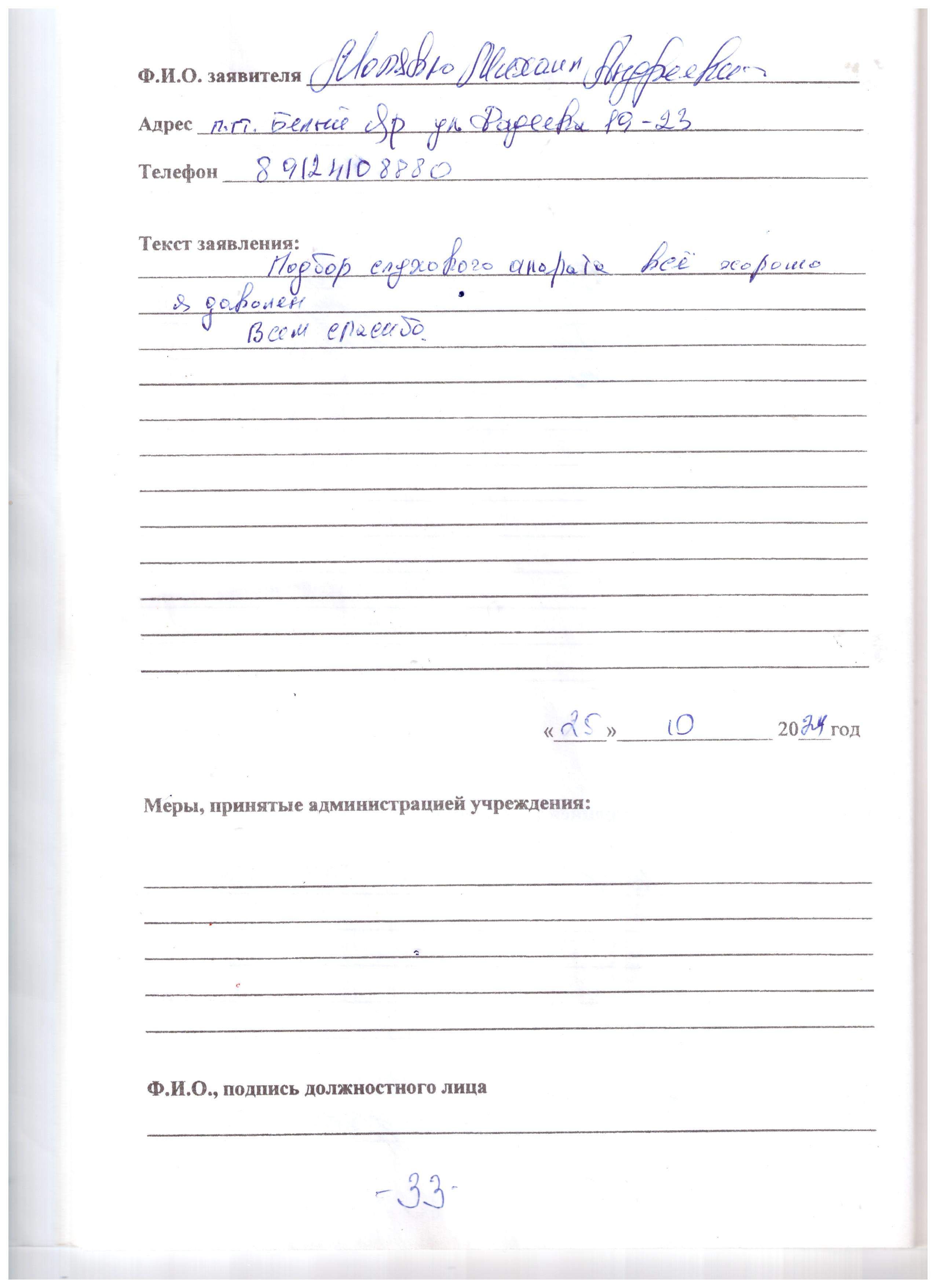Мы выражаем огромную благодарность за профессионально оказанную помощь в подборе слухового аппарата, спасибо большое!