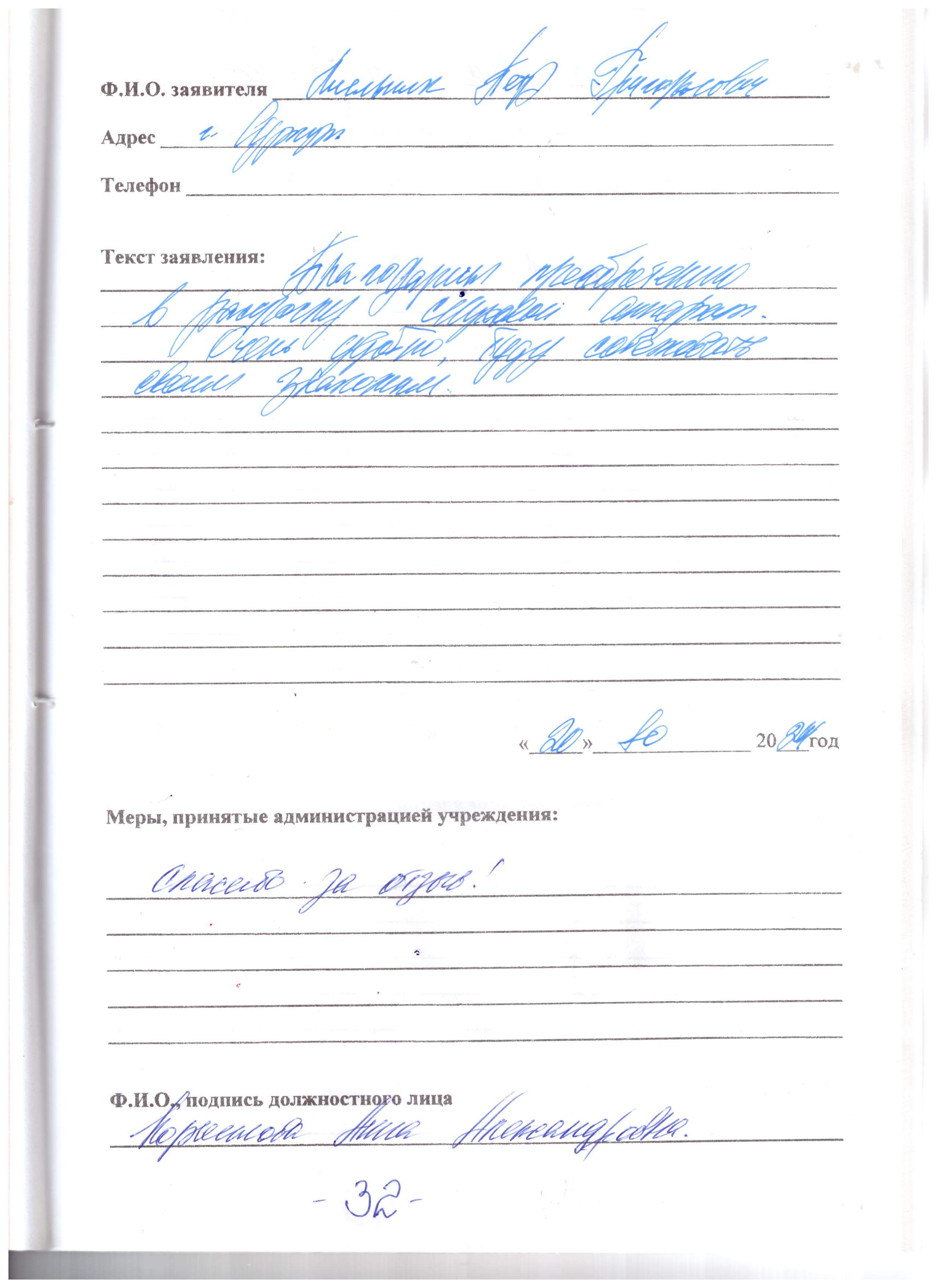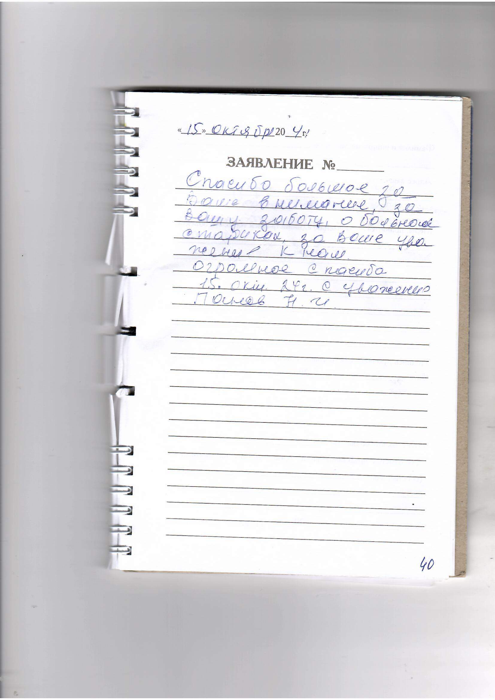 Спасибо большое за Ваше внимание, за вашу заботу, о больных стариках, за ваше уважение к нам, огромное спасибо