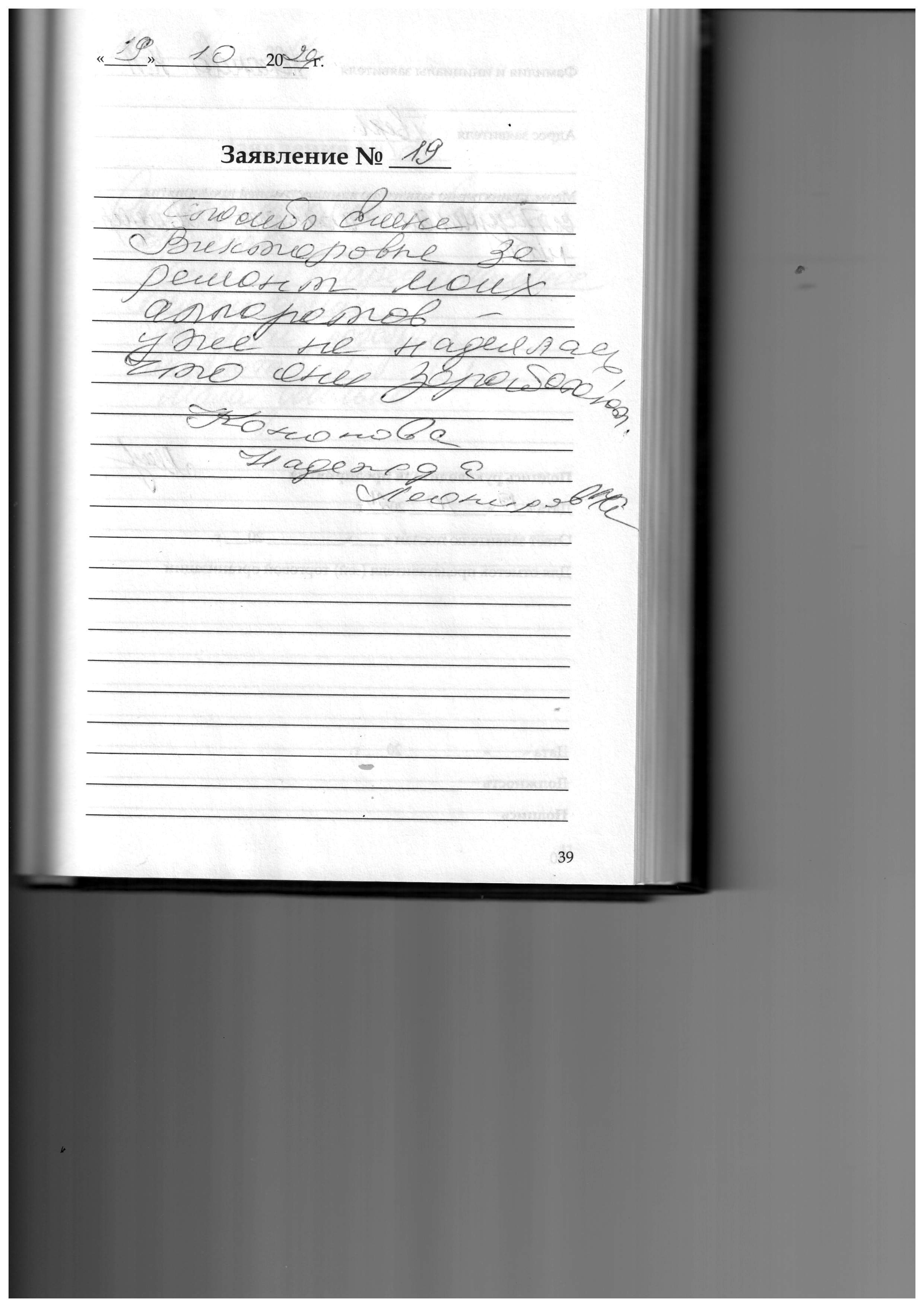 Спасибо Елене Викторовне за ремонт моих аппаратов уже не надеялась, что они заработают. Кононова Надежда Леонидовна.