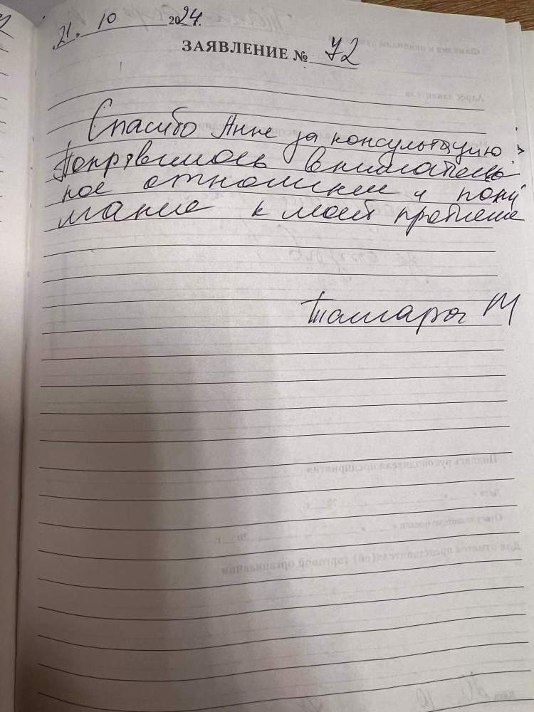 Спасибо Анне за консультацию . понравилось внимательное отношение и понимание к моей проблеме