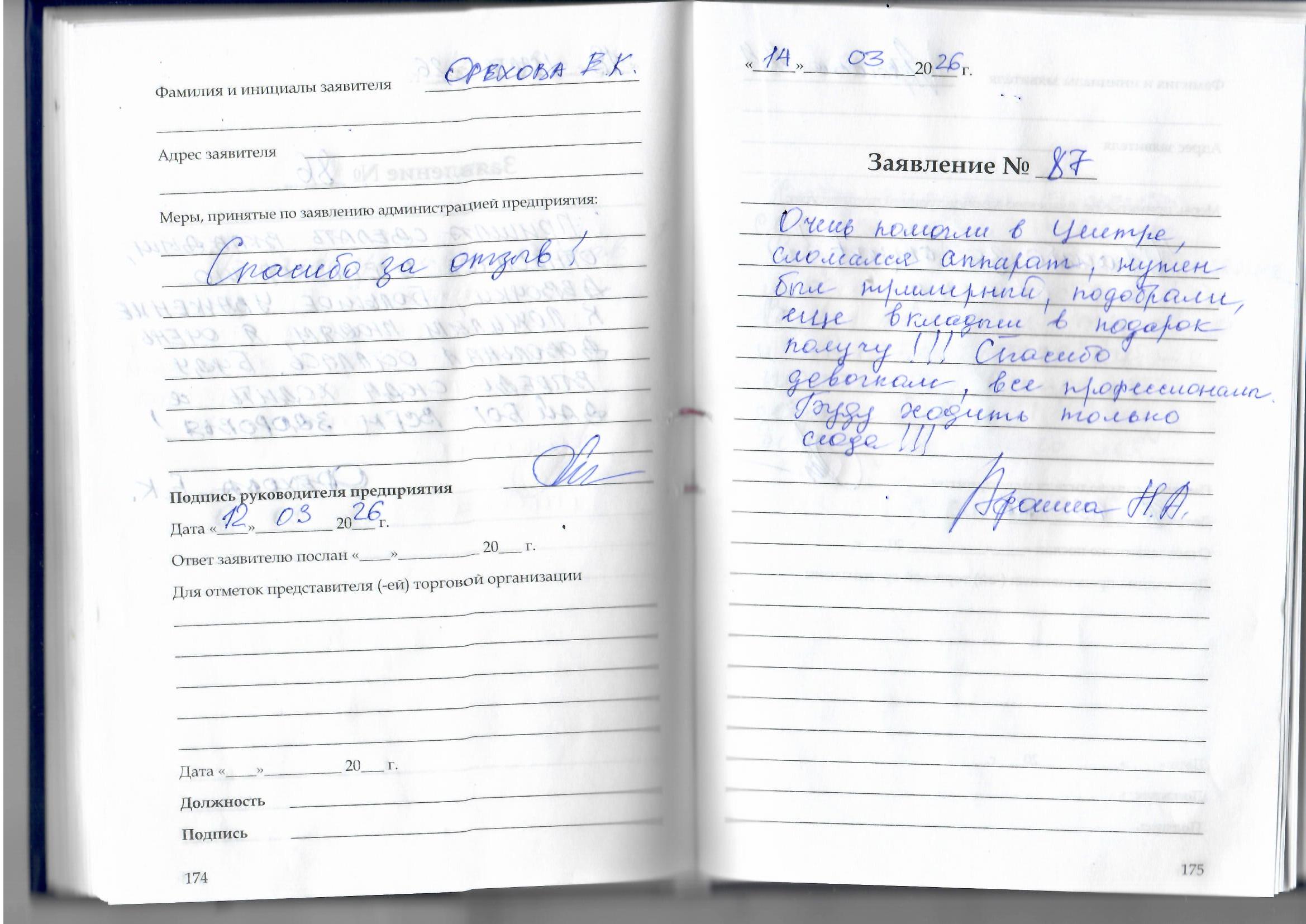 Очень помогли в Центре, сломался аппарат, нужен был триммерный, подобрали, еще вкладыш в подарок получу!!! Спасибо девочкам, все профессионалы. Буду ходить только сюда!!! Афонина Н.А.