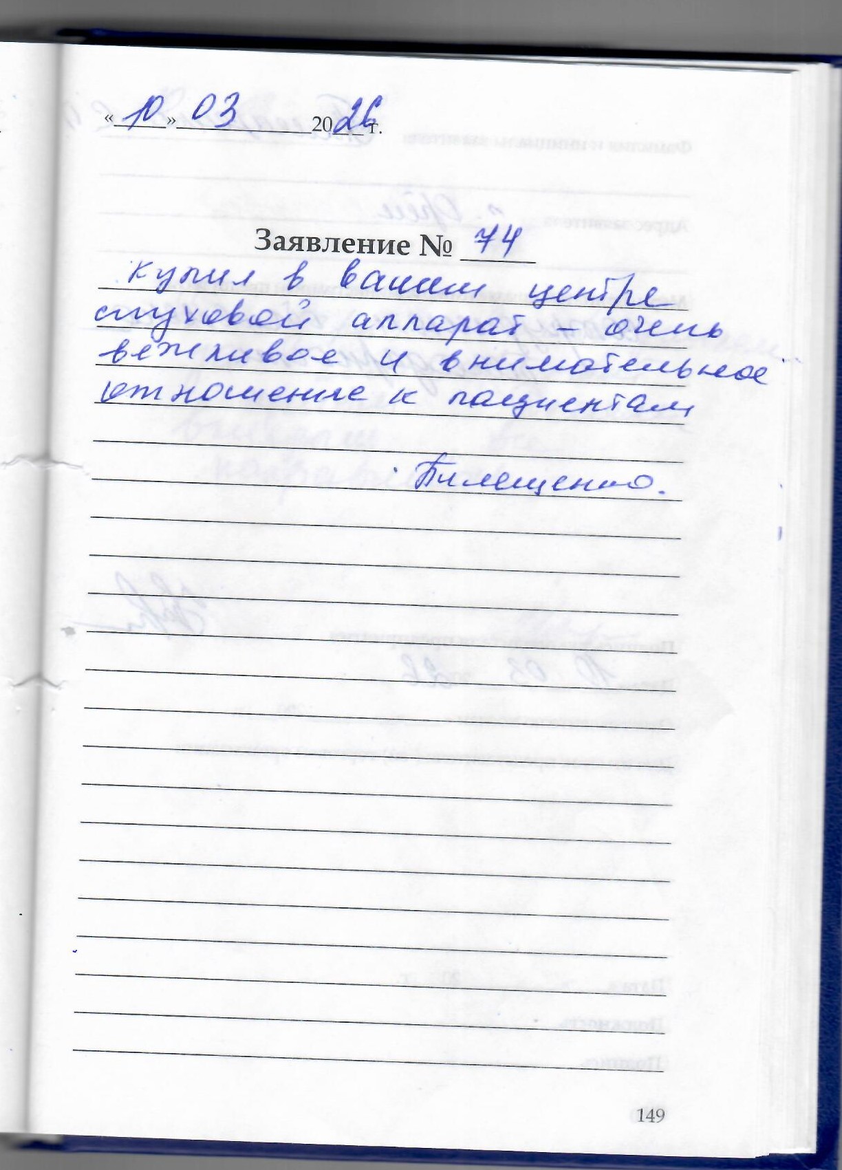 Купил в вашем центре слуховой аппарат -очень вежливое и внимательное отношение к пациентам.