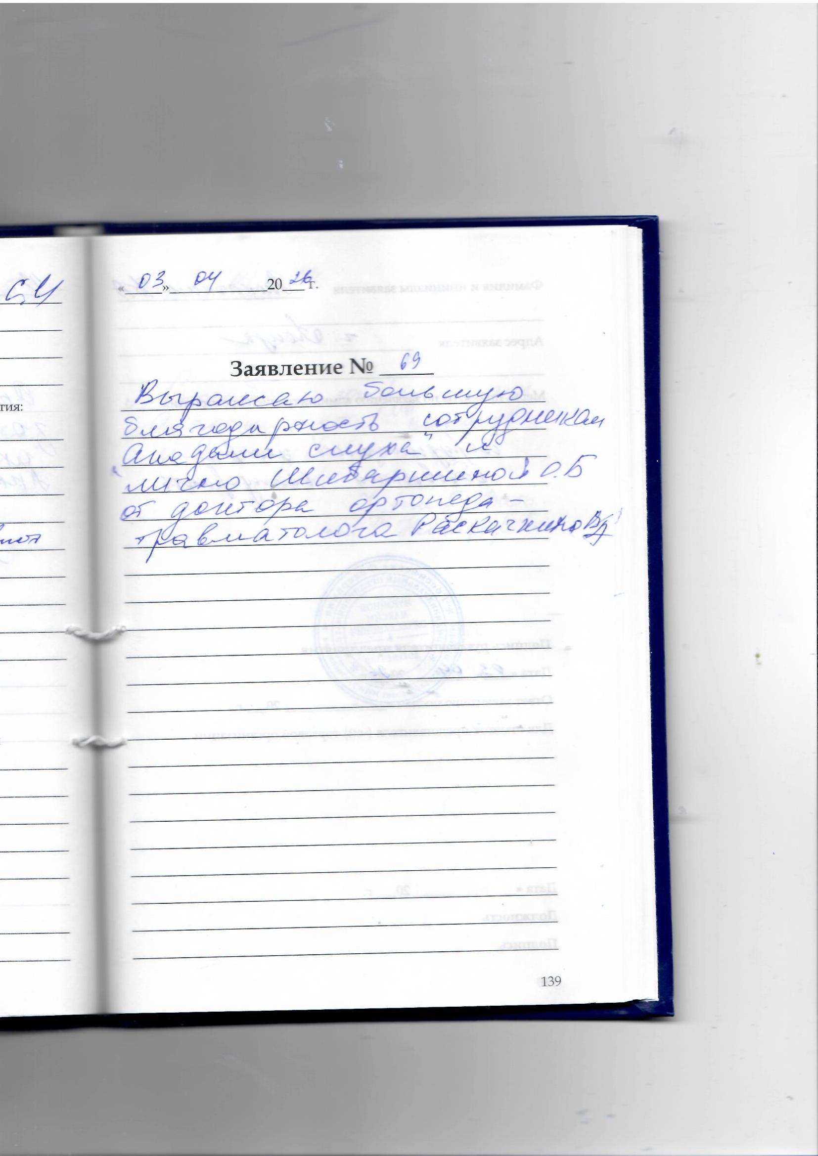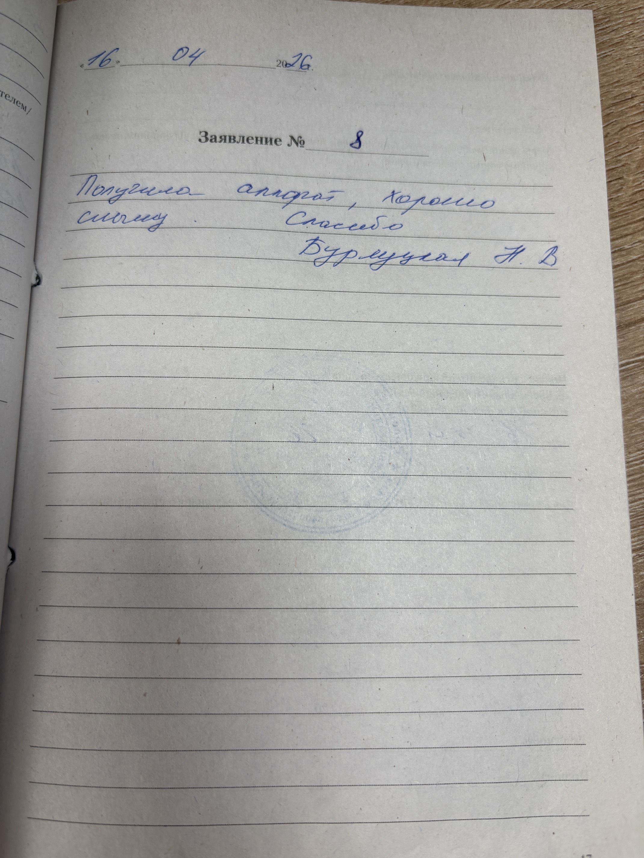 От пациента Сорокиной Лидии Ивановны благодарю, что вы починили слуховой аппарат, большое спасибо.