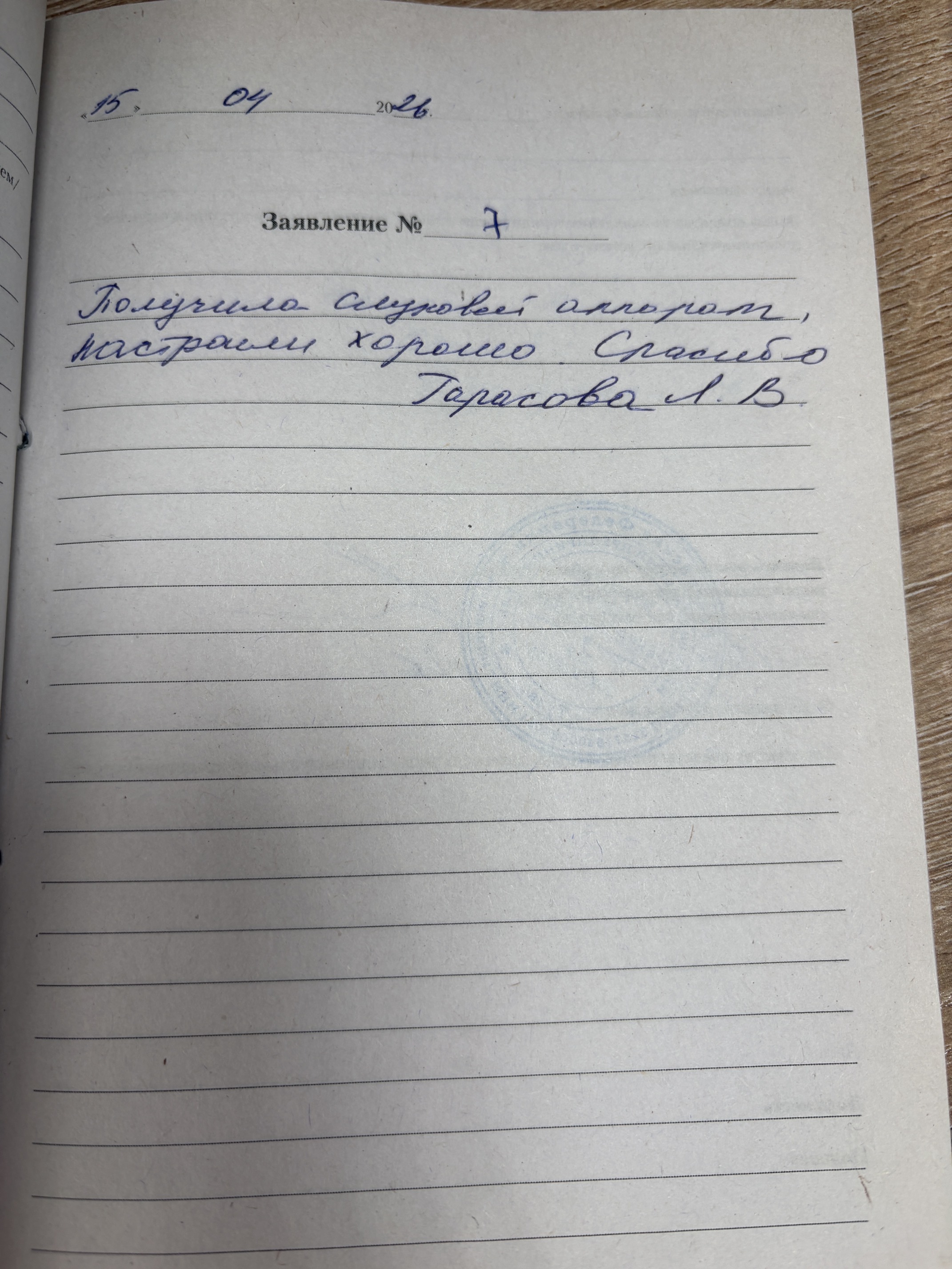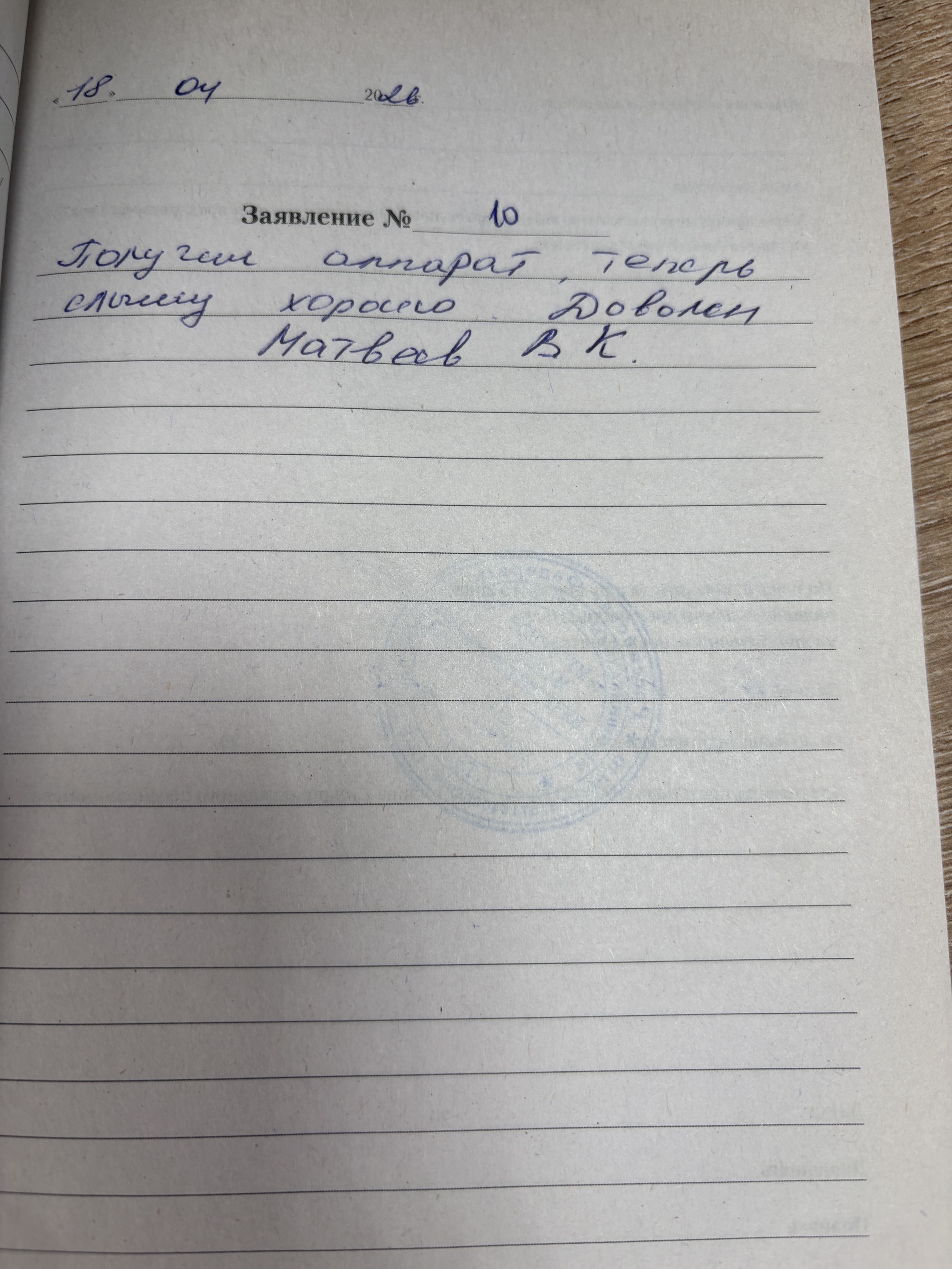 Маслова Галина Александровна, постоянный клиент благодарю за помощь, настроили аппарат, почистили его. Теперь я снова хорошо слышу.