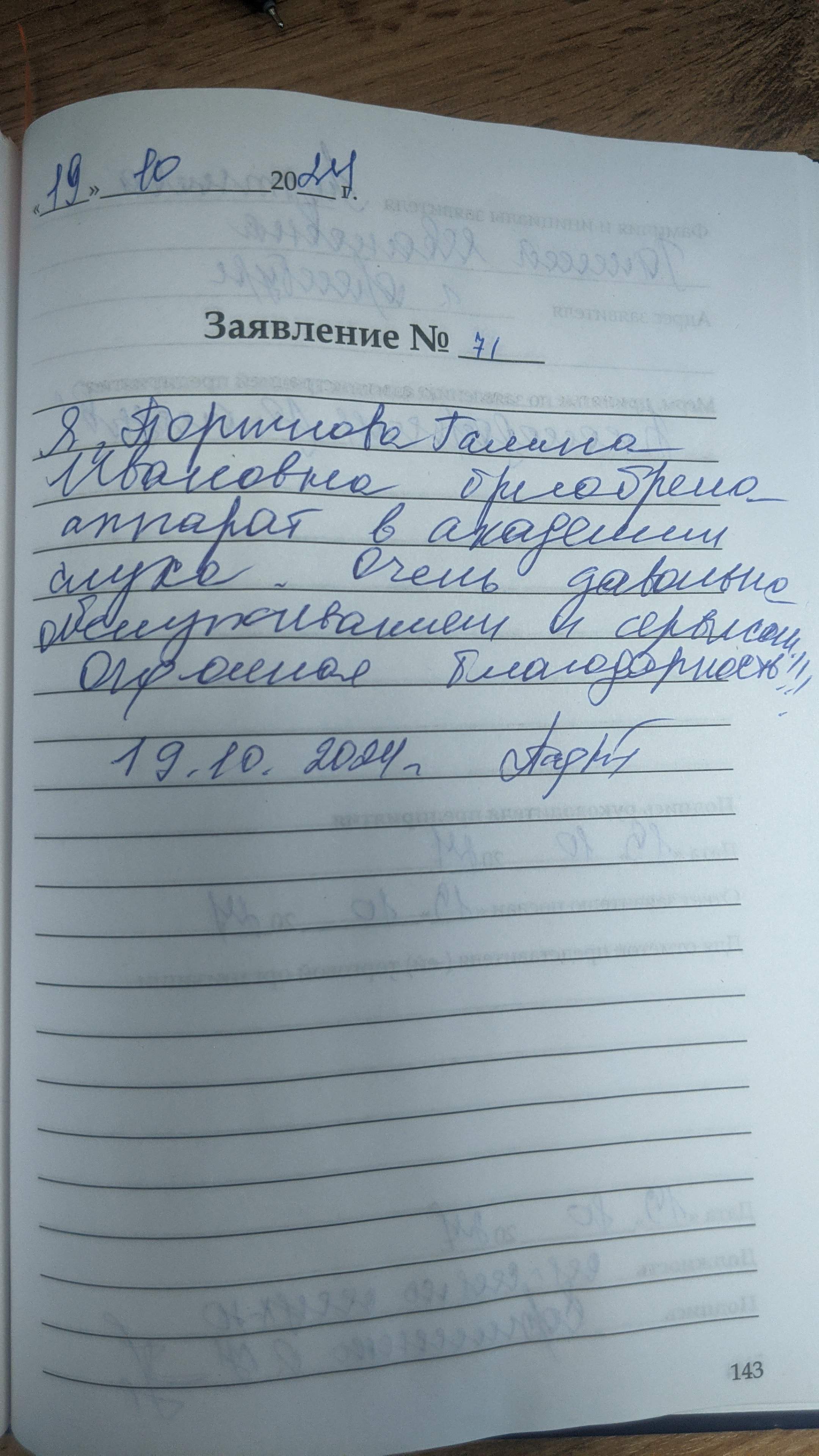 Я, Портнова Галина Ивановна, приобрела аппарат в Академии Слуха. Очень довольна обслуживанием и сервисом. Огромная благодарность. 19.10.2024.