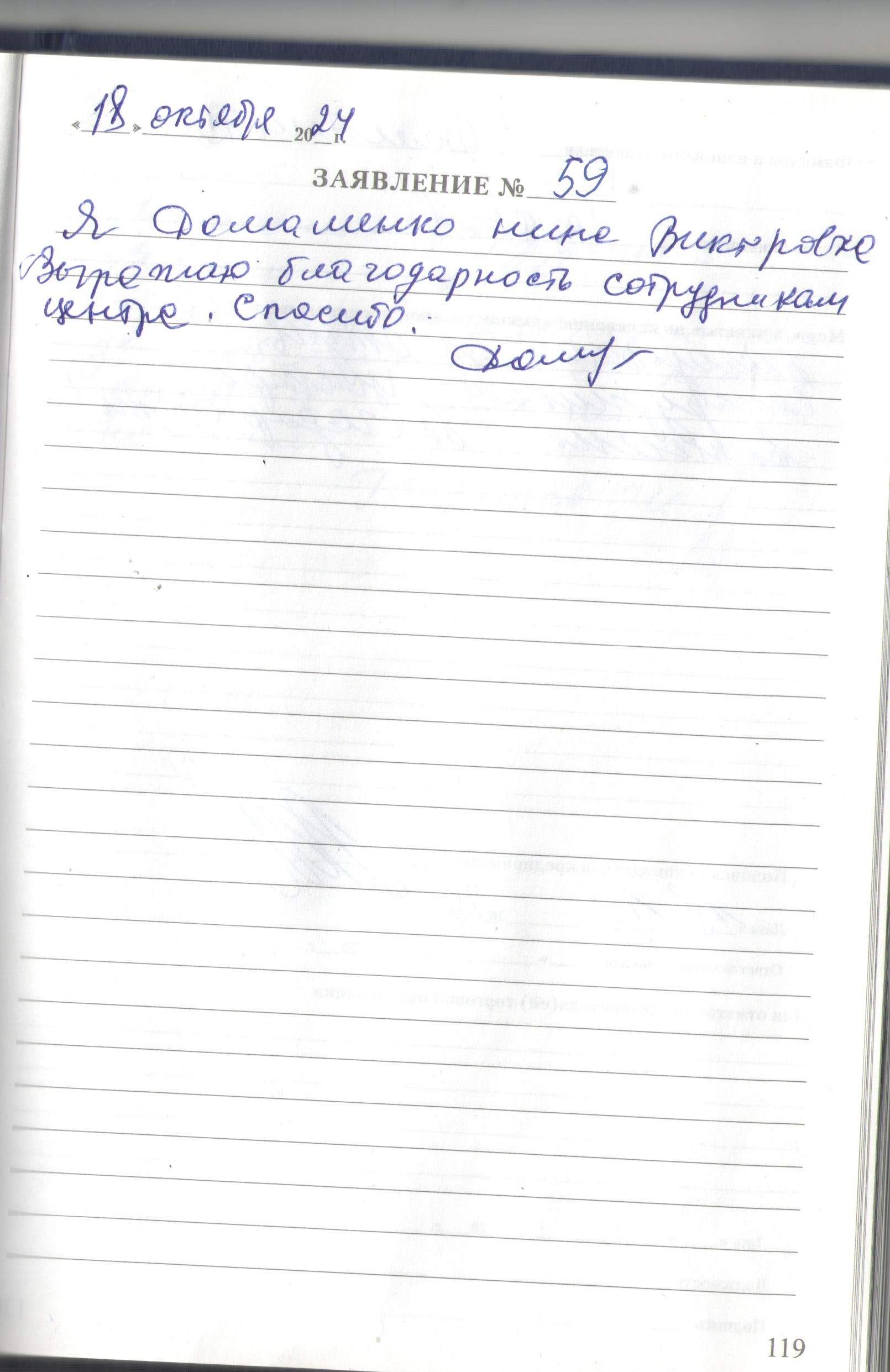 Я, Домашенко Нина Викторовна, выражаю благодарность сотрудникам центра. Спасибо.