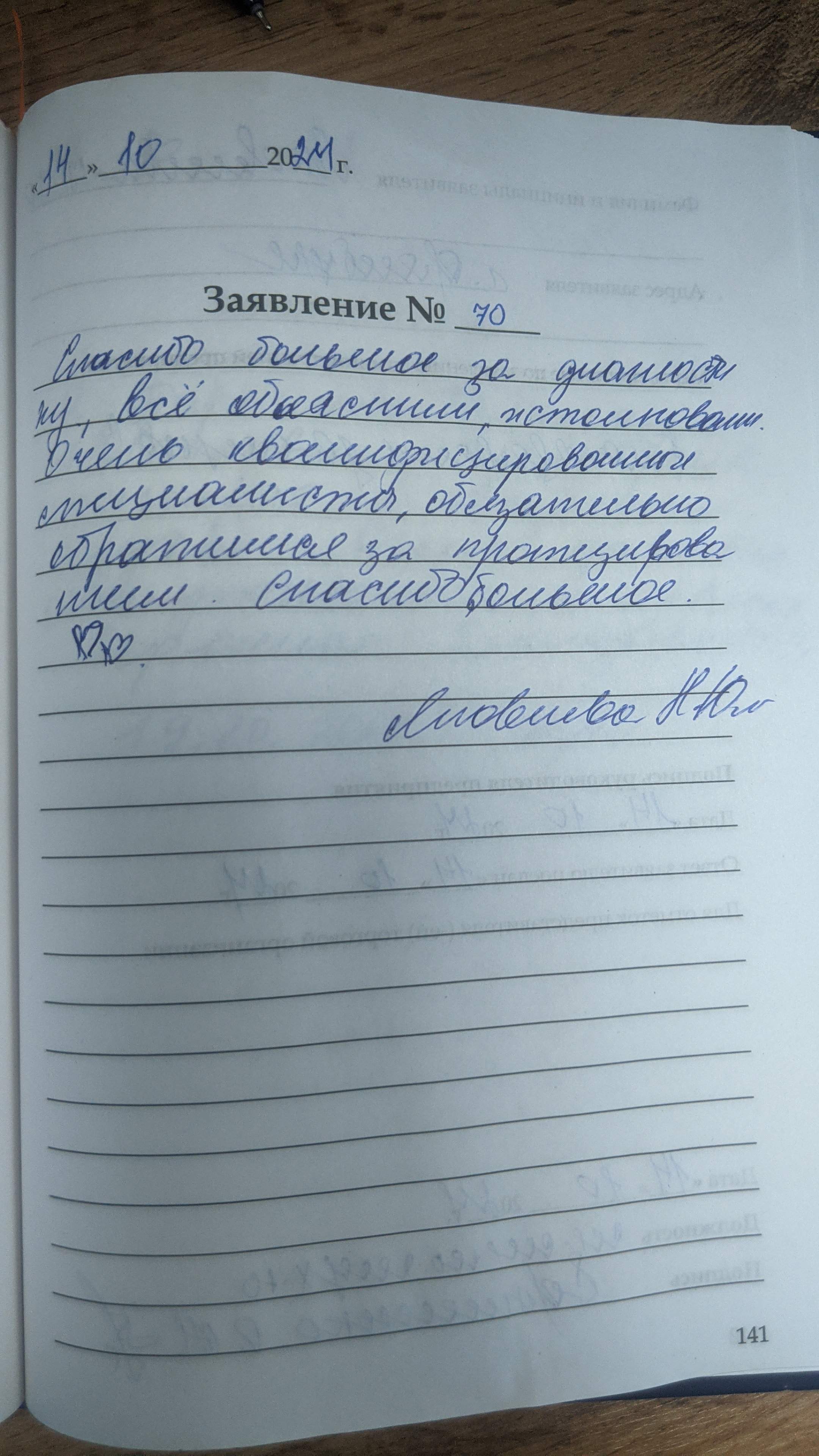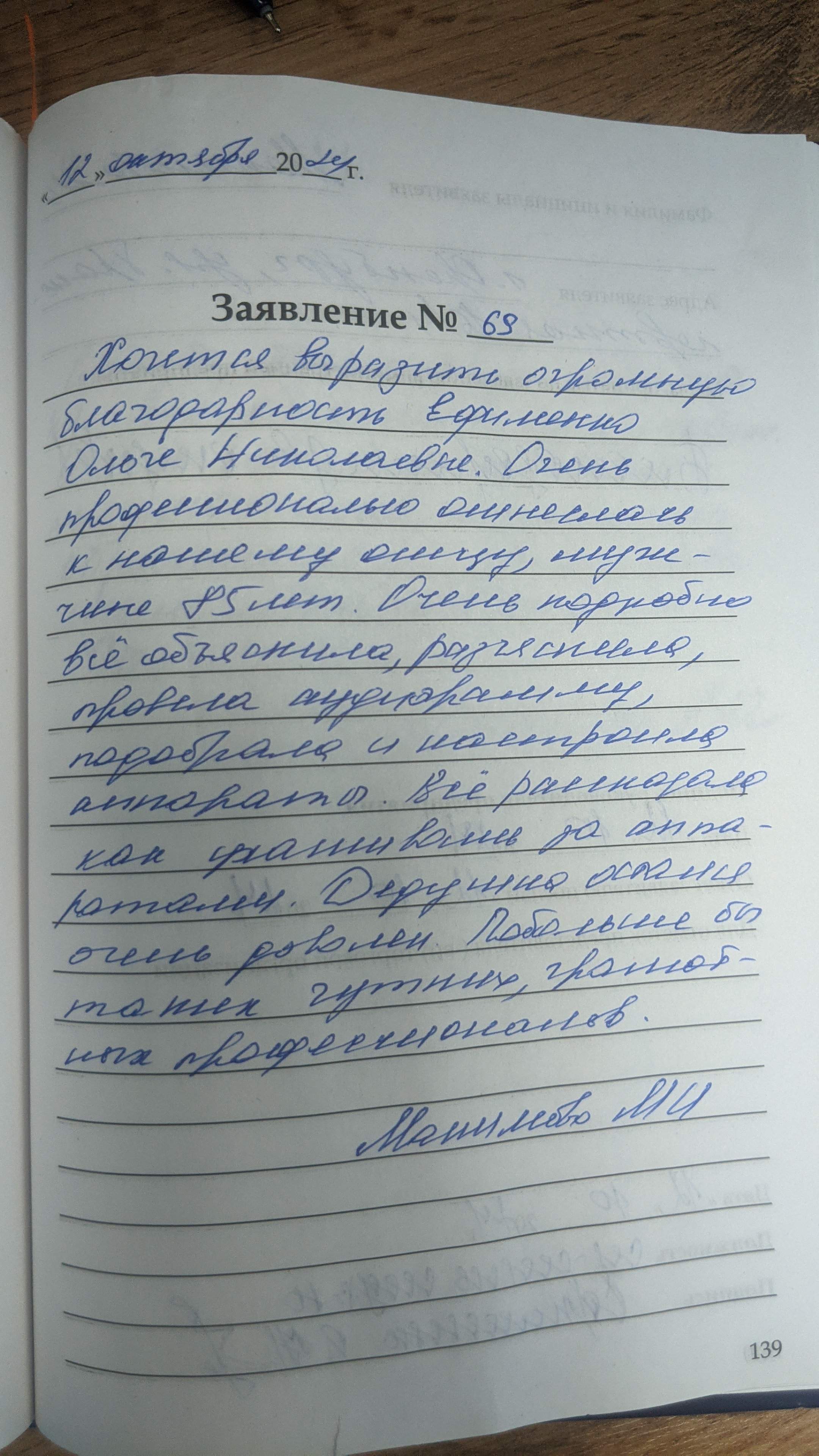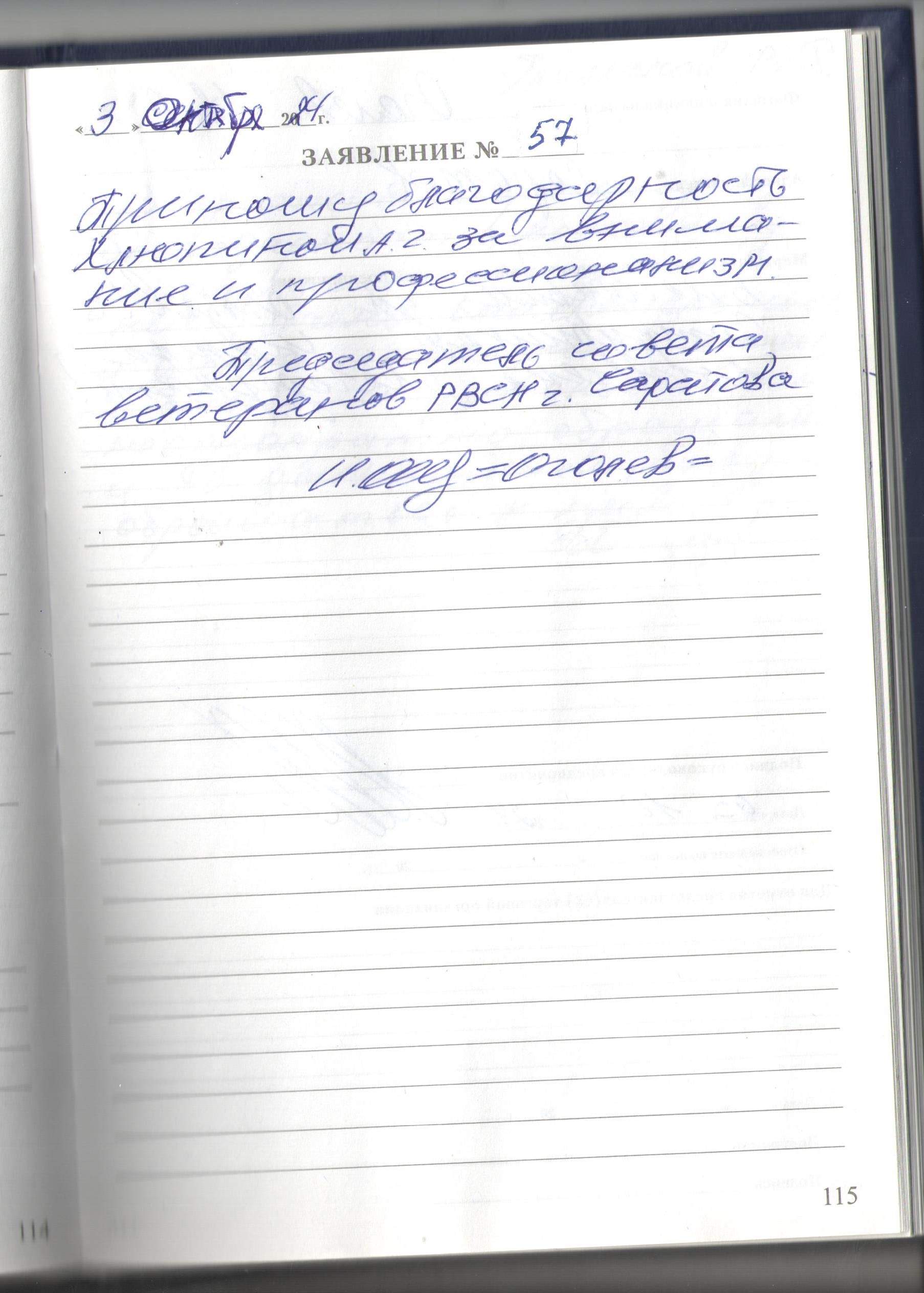 Приношу благодарность Хлюпиной АГ. за внимание и профессионализм. Председатель совета ветеранов РВСН г.Саратов Оголев