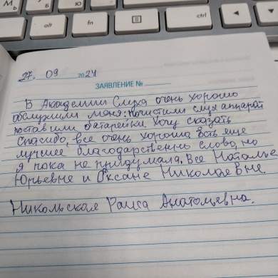 В Академии Слуха очень хорошо обслужили меня: почистили слуховой аппарат, поставили батарейки. Хочу сказать спасибо, всё очень хорошо. Есть еще лучшее благодарственное слово, но я пока не придумала. Всё Наталье Юрьевне и Оксане Николаевне.