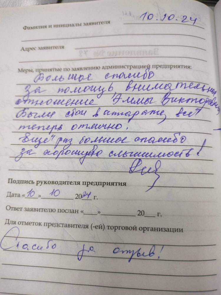 Большое спасибо за помощь, внимательное отношение Эмме Викторовне. Были сбои в аппарате, все теперь отлично. Еще раз большое спасибо за хорошую слышимость!