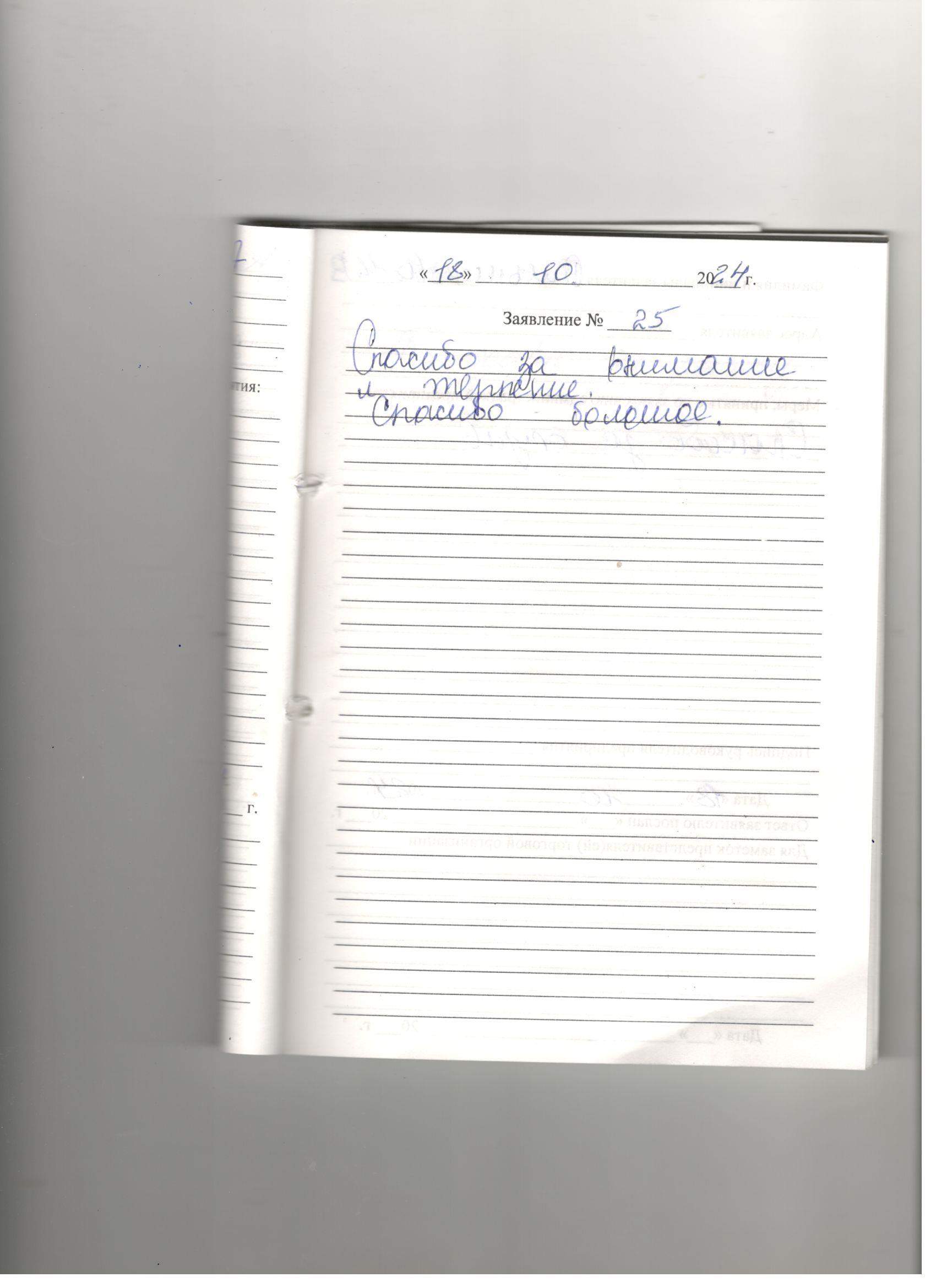 Большое спасибо за приём и качественное обслуживание .