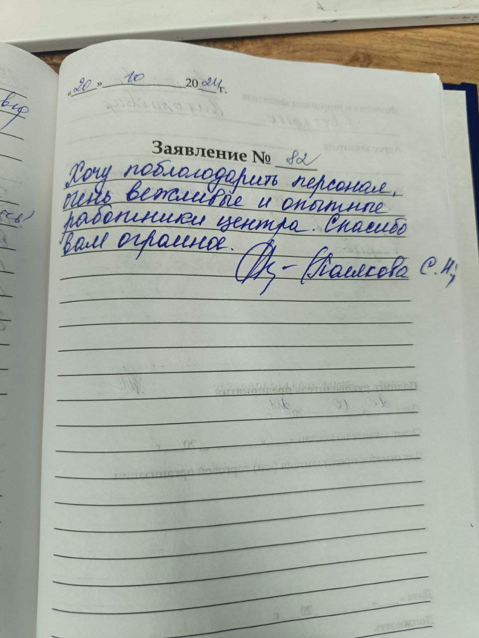 Хочу поблагодарить персонал, очень вежливые и опытные работники центра. Спасибо вам огромное.