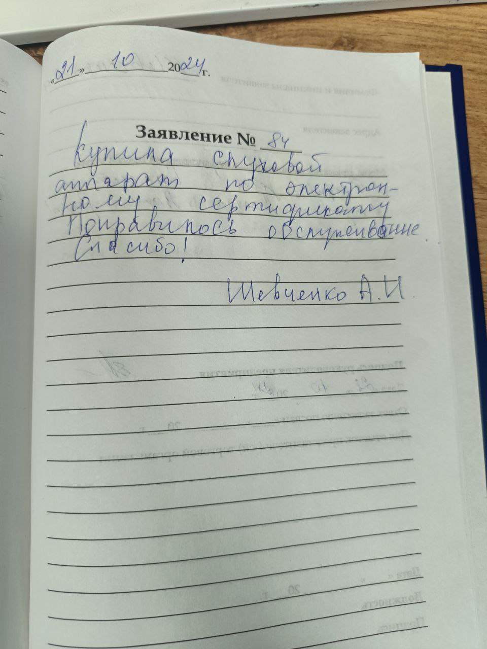 Купила слуховой аппарат по электронному сертификату. Понравилось обслуживание. Спасибо!