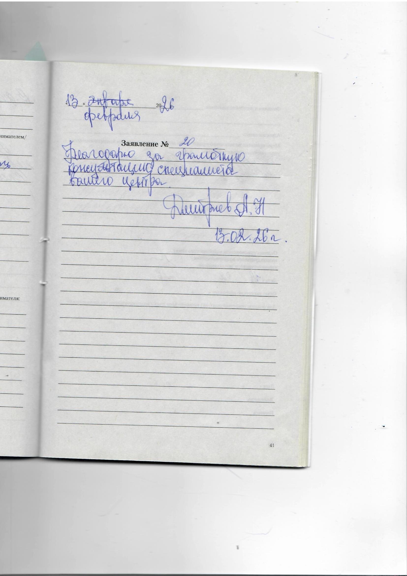 Благодарю за грамотную консультацию специалиста вашего центра.