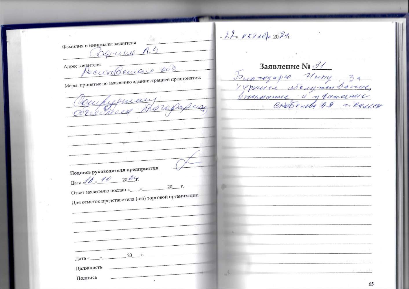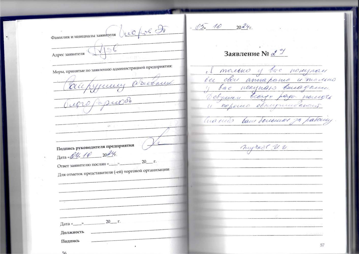 Спасибо большое за внимательное отношение и качественный сервис.