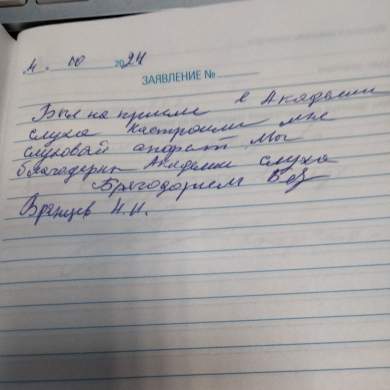 Хочу выразить огромную благодарность – самым лучшим врачам в “Академии Слуха”. Теперь я слышу. Спасибо.