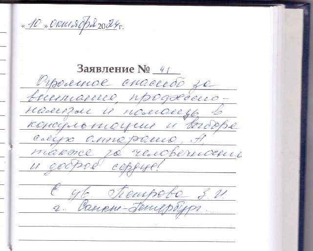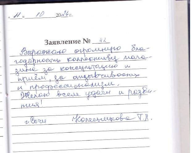 Выражаю огромную благодарность коллективу магазина за консультацию и прием, за отзывчивость и профессионализм. Желаю всем удачи и развития!