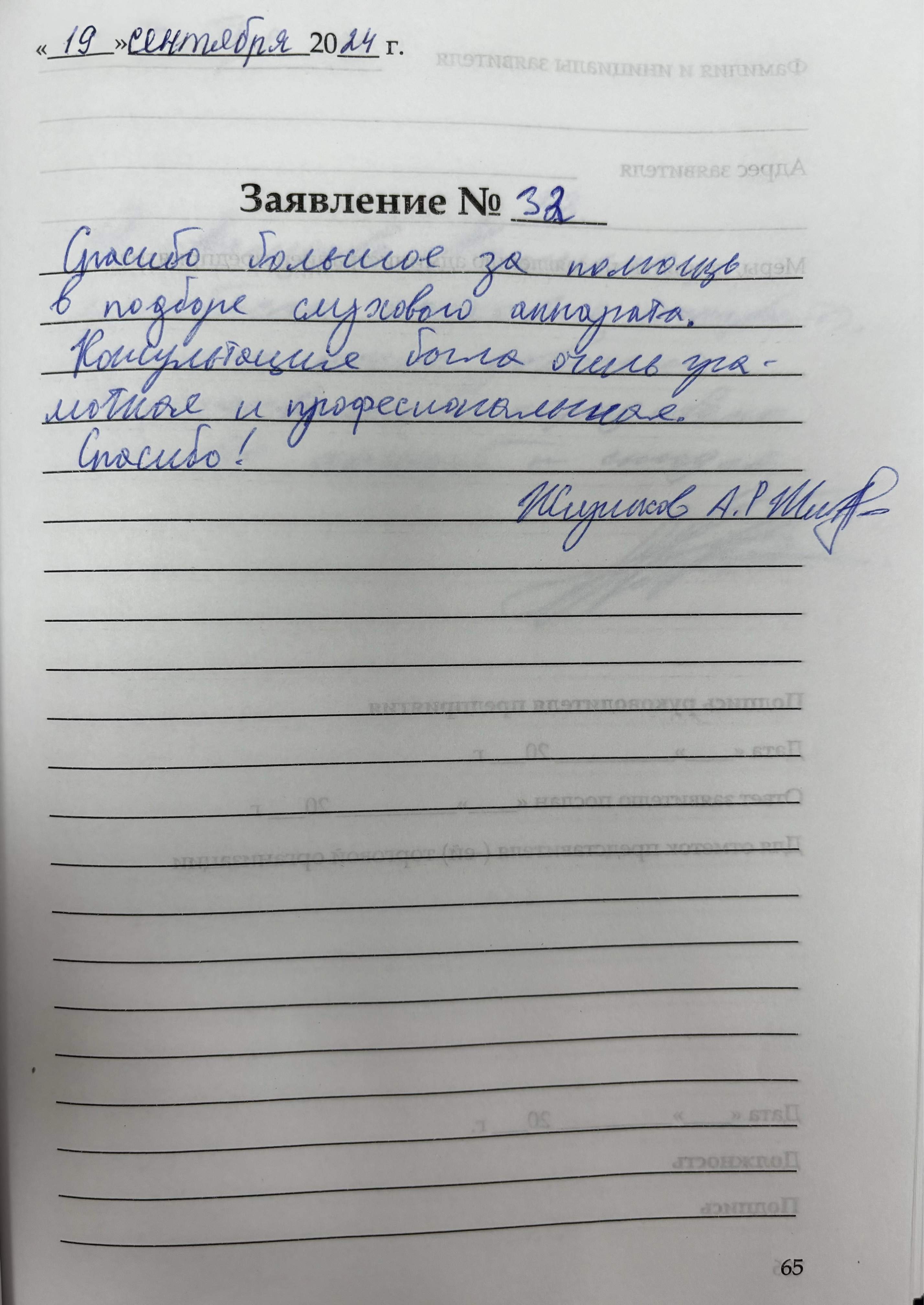 Спасибо большое за помощь в подборе слухового аппарата. Консультация была очень грамотная и профессиональная. Спасибо!