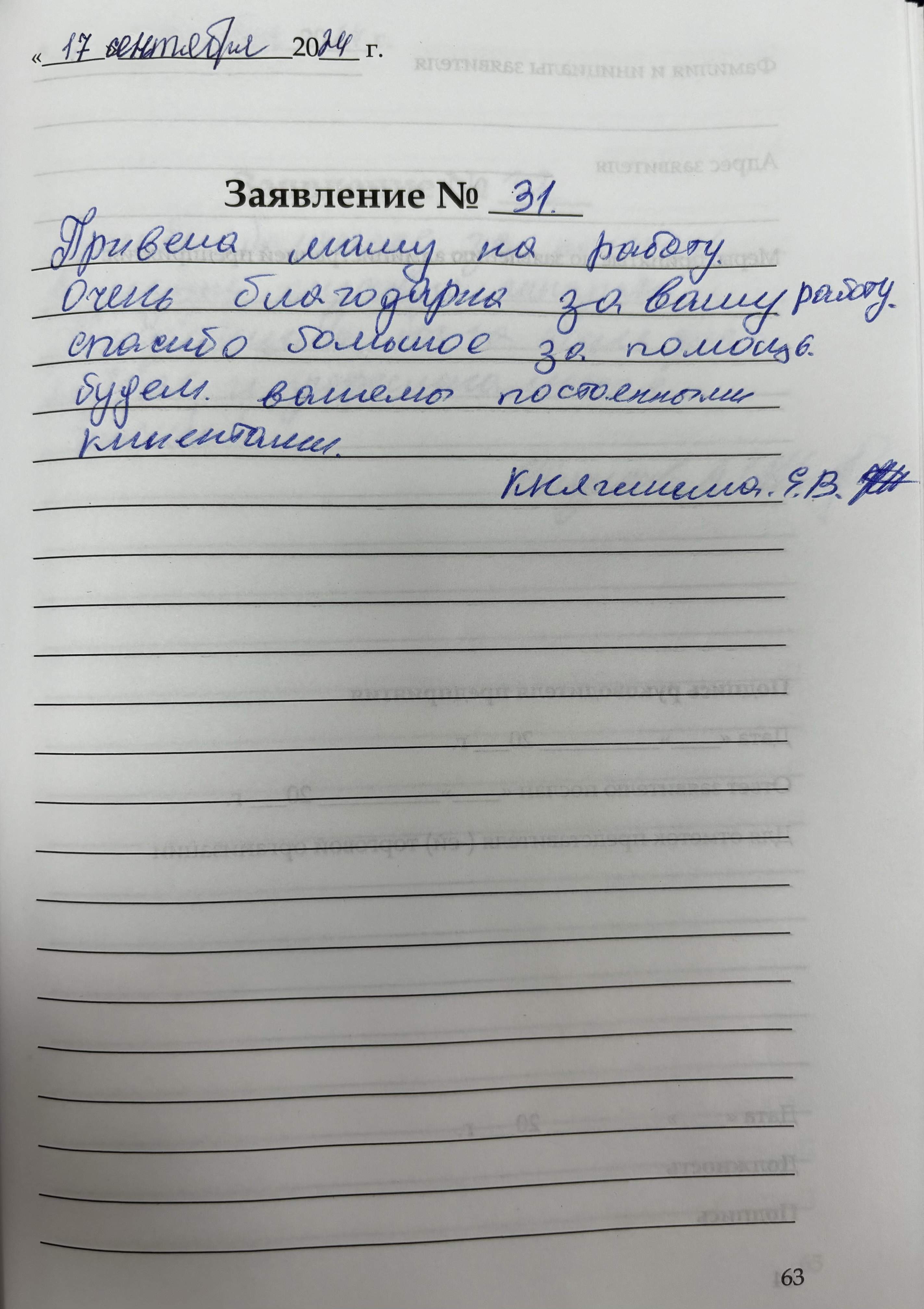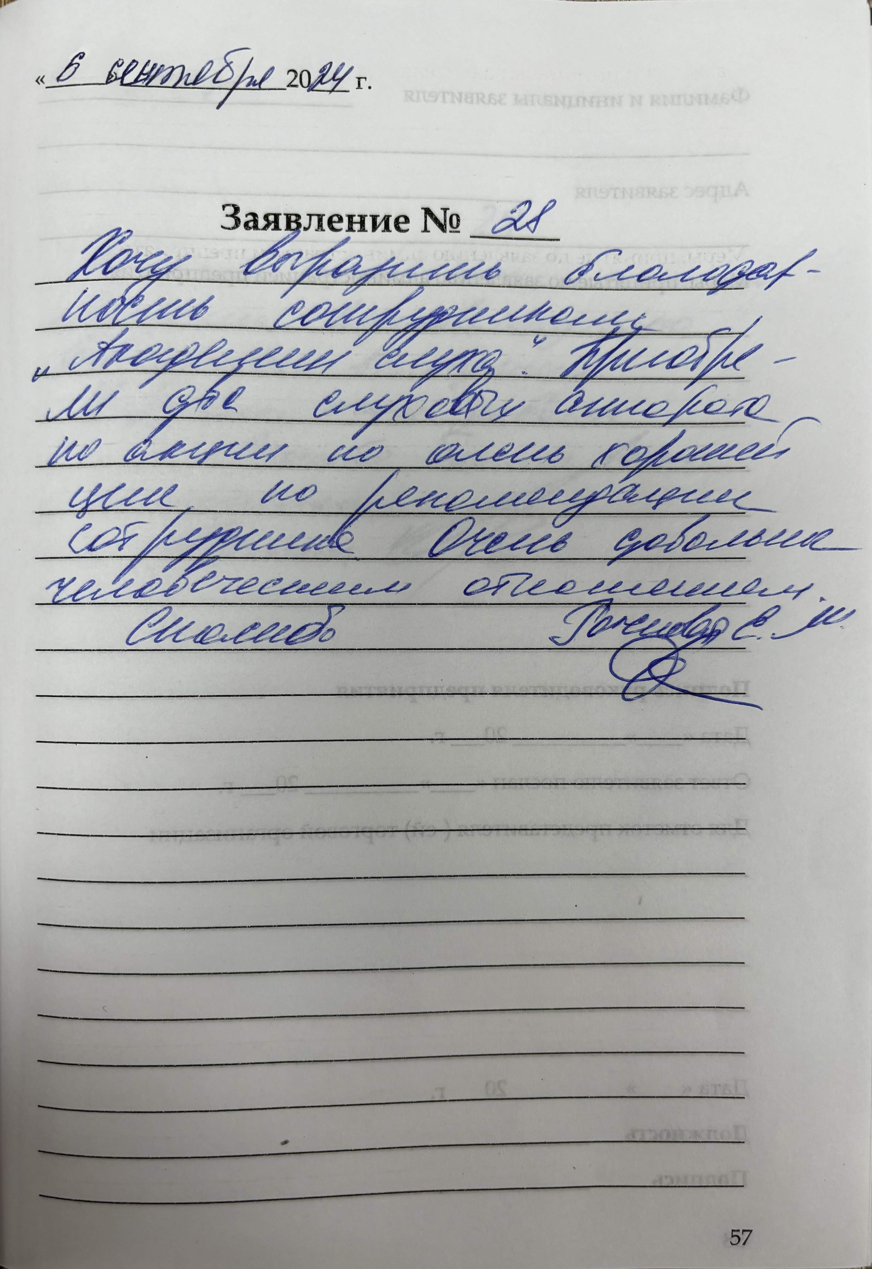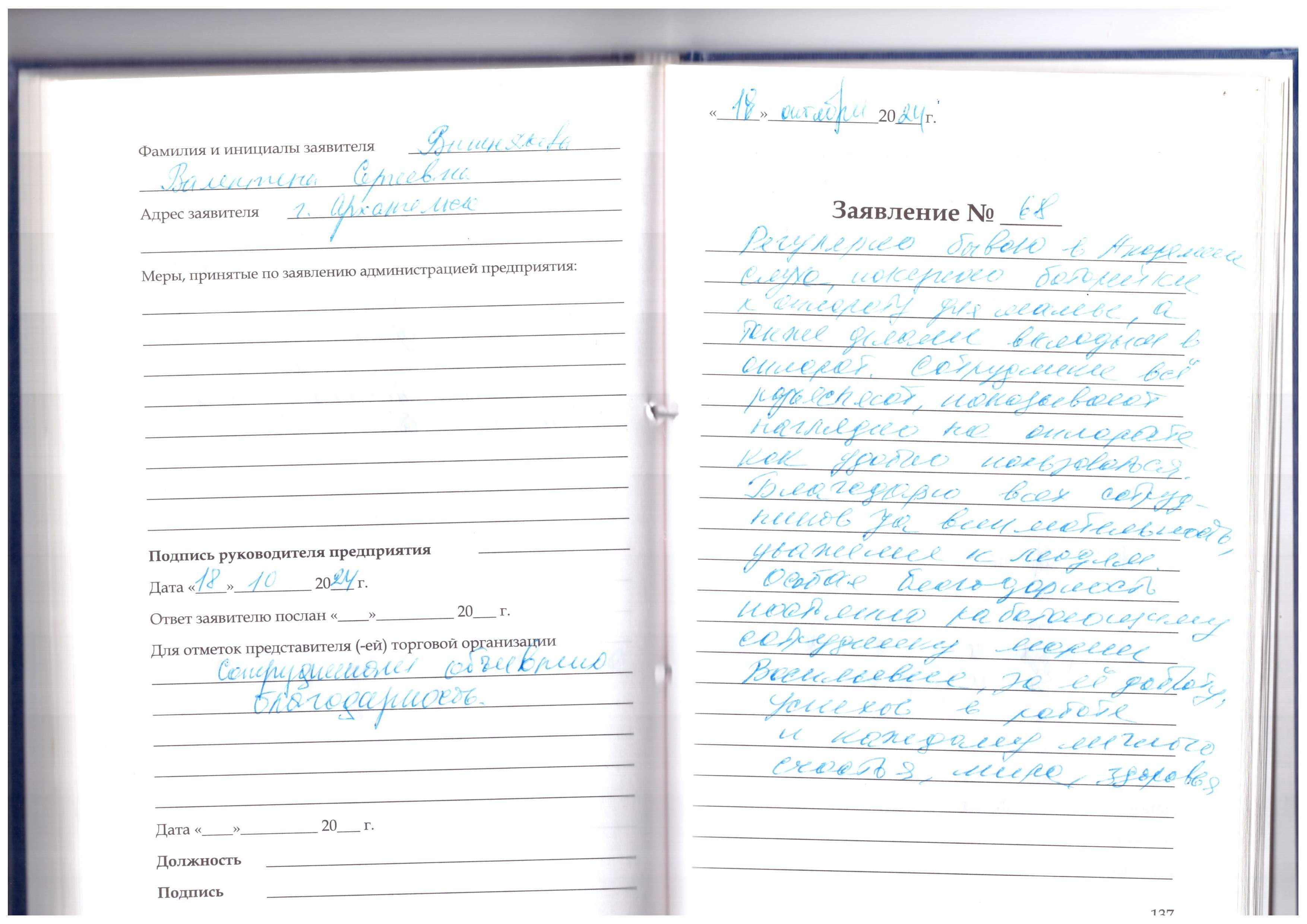 Благодарю всех сотрудников за внимательность, уважение к людям. Особое благодарность постоянно работающему сотруднику Марии Васильевне, за ее доброту, успехов в работе и каждому личного счастья, мира, здоровья.