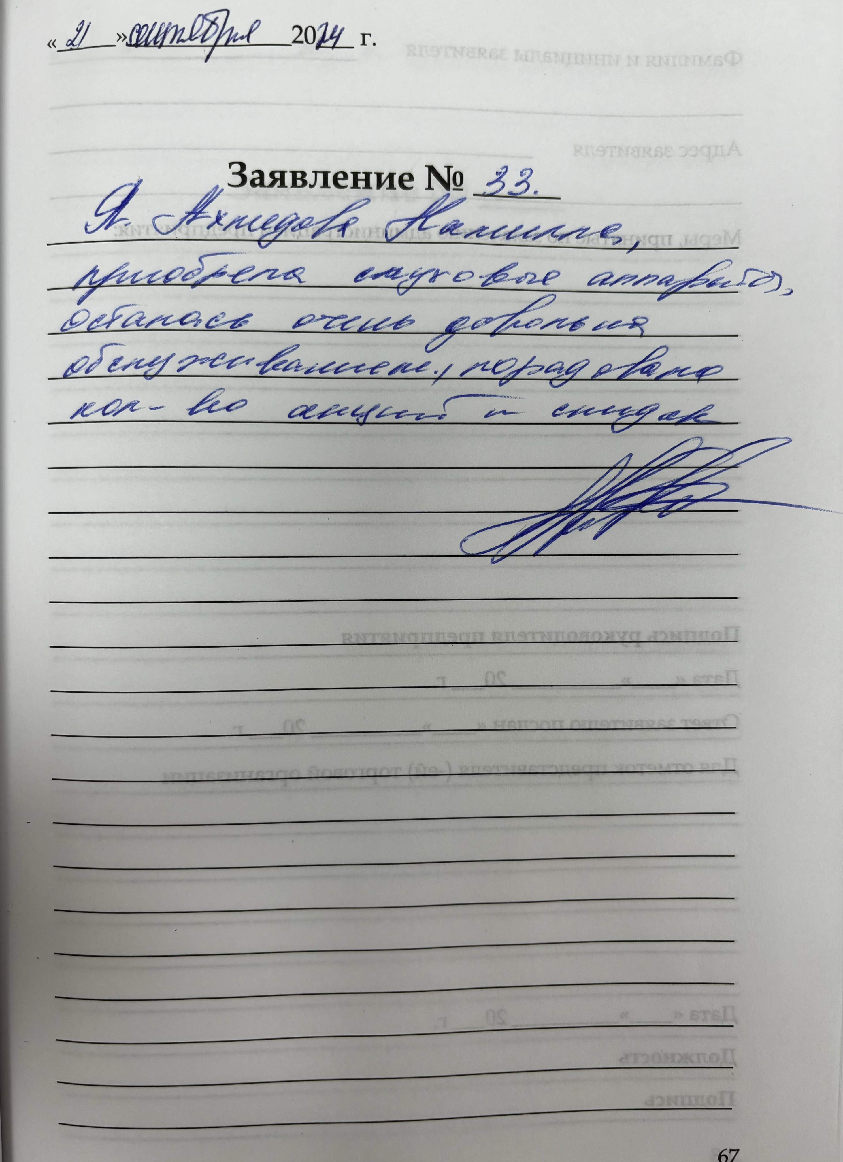 - Заявка на рассрочку