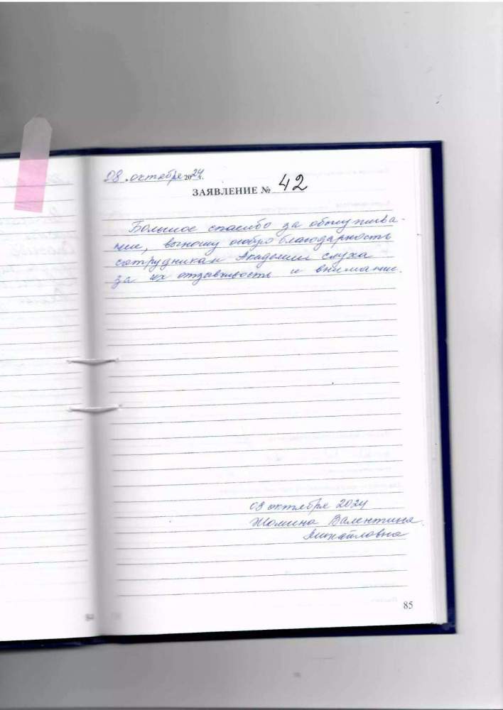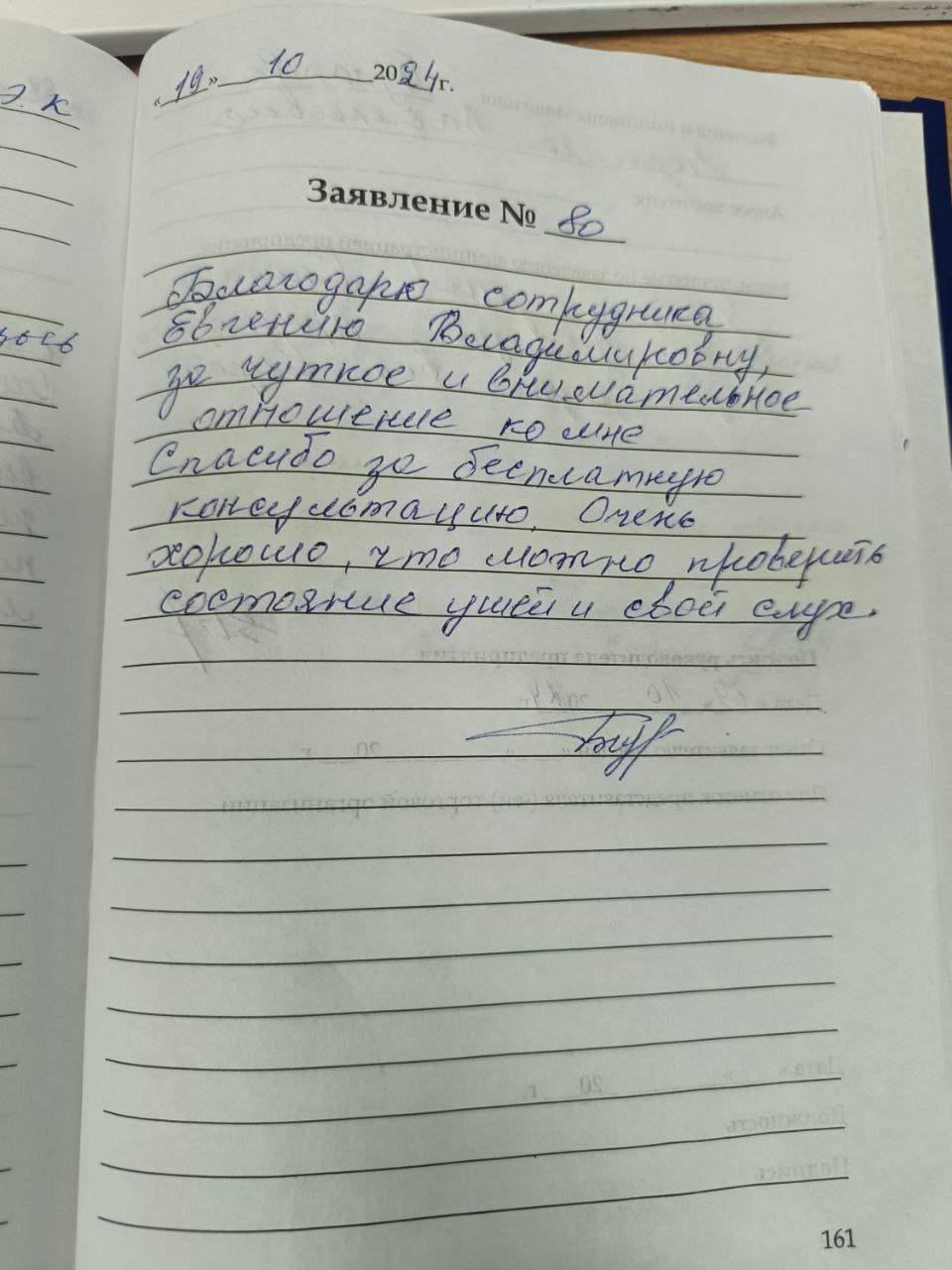 Большое спасибо за обслуживание, выношу особую благодарность сотрудникам Академии слуха за их отзывчивость и внимание.