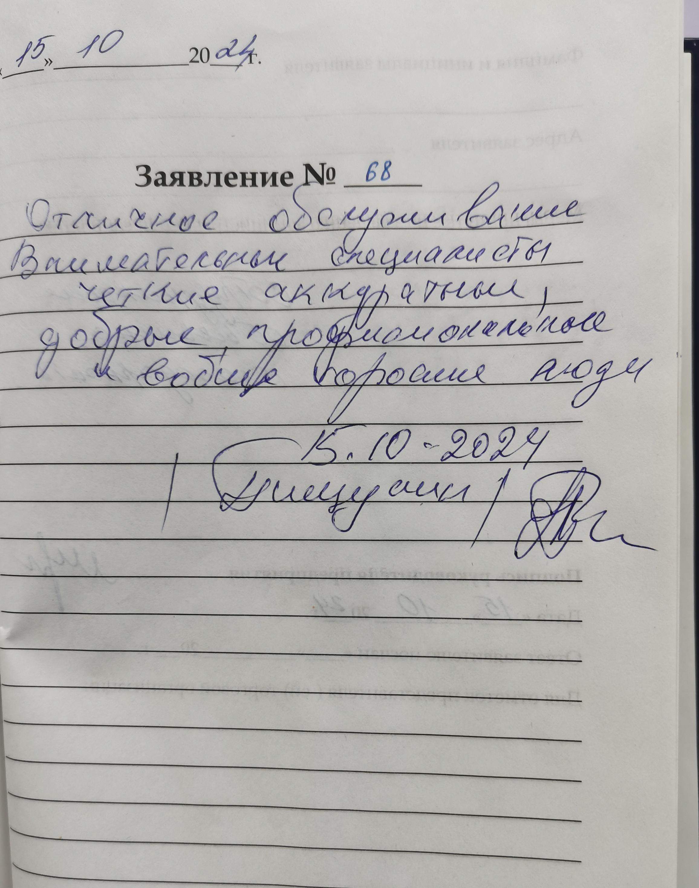 Отличное обслуживание, внимательные специалисты, четкие, аккуратные, добрые, профессиональные и вообще хорошие люди. 15.10.2024 Пищулин