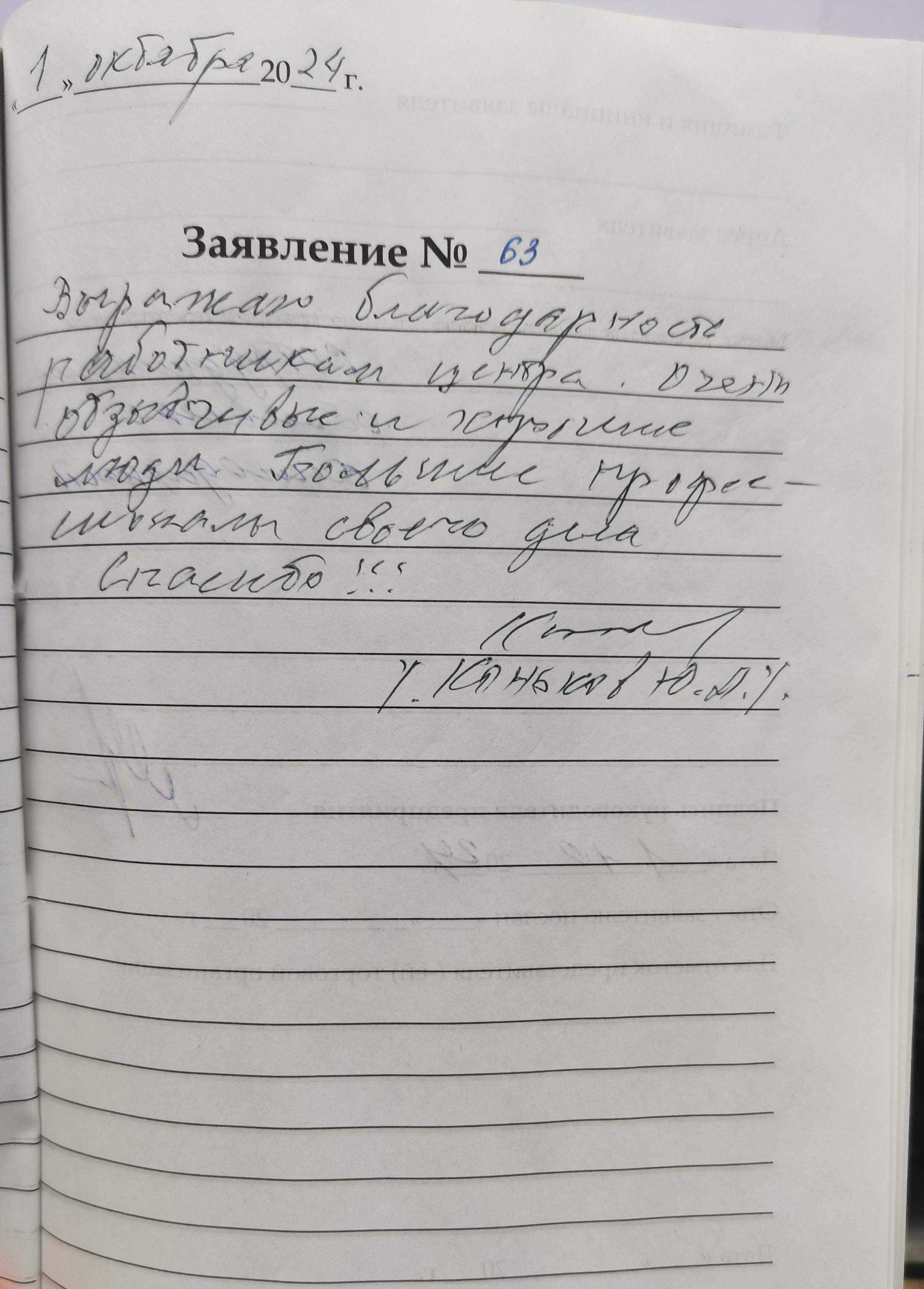 Выражаю благодарность работникам центра. Очень отзывчивые и хорошие люди. Большие профессионалы своего дела. Спасибо!!! Коньков Ю.Л.