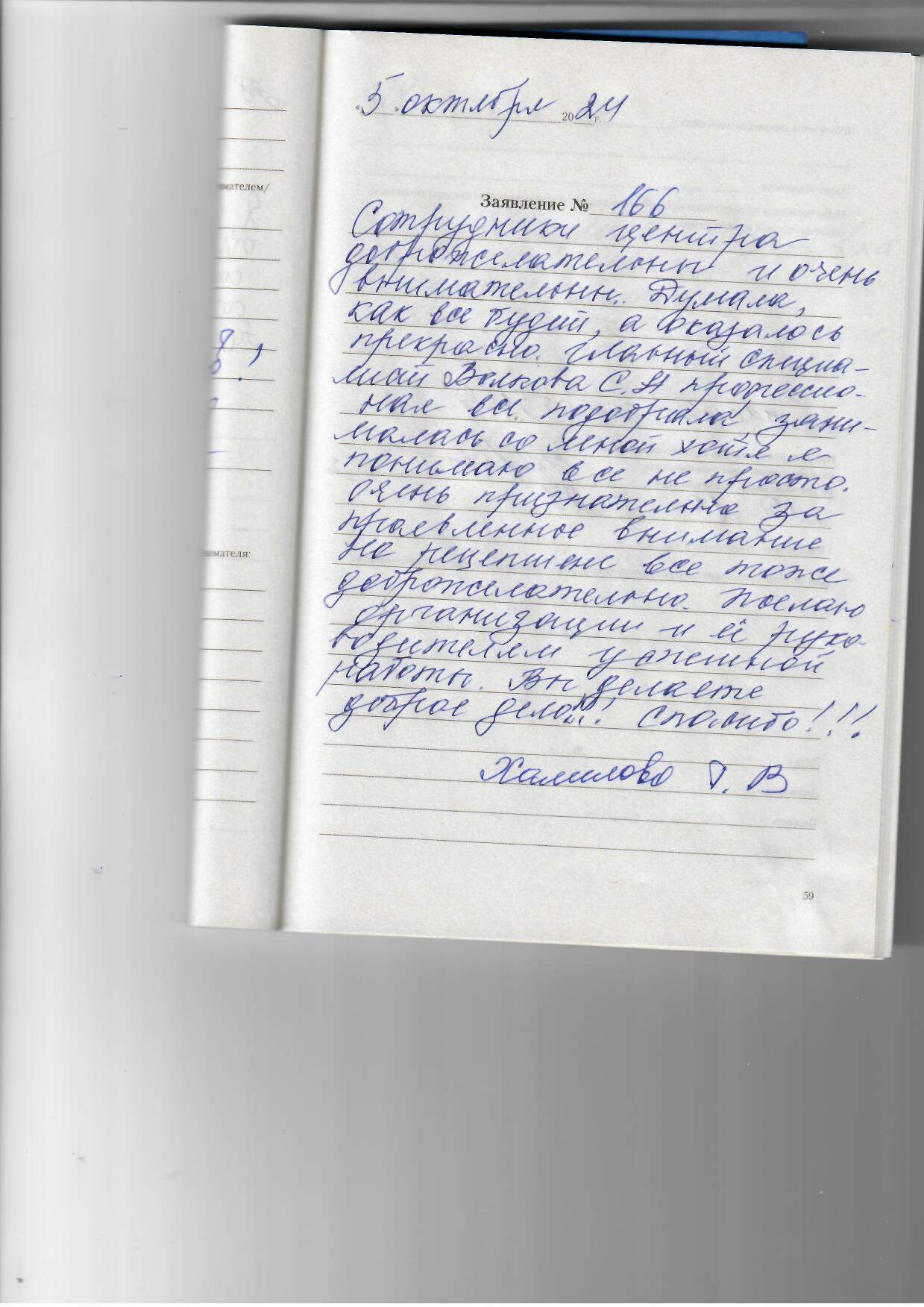 Сотрудники центра доброжелательны и очень внимательны. Думала как все будет, а оказалось прекрасно. Главный специалист Волкова С.А. профессиональная. все подобрала, занималась со мной , хотя я понимаю все не просто. Очень признательна за проявленное внимание. На ресепшен все тоже доброжелательны. Желаю организации и ее руководителям успешной работы. Вы делаете доброе дело! Спасибо!