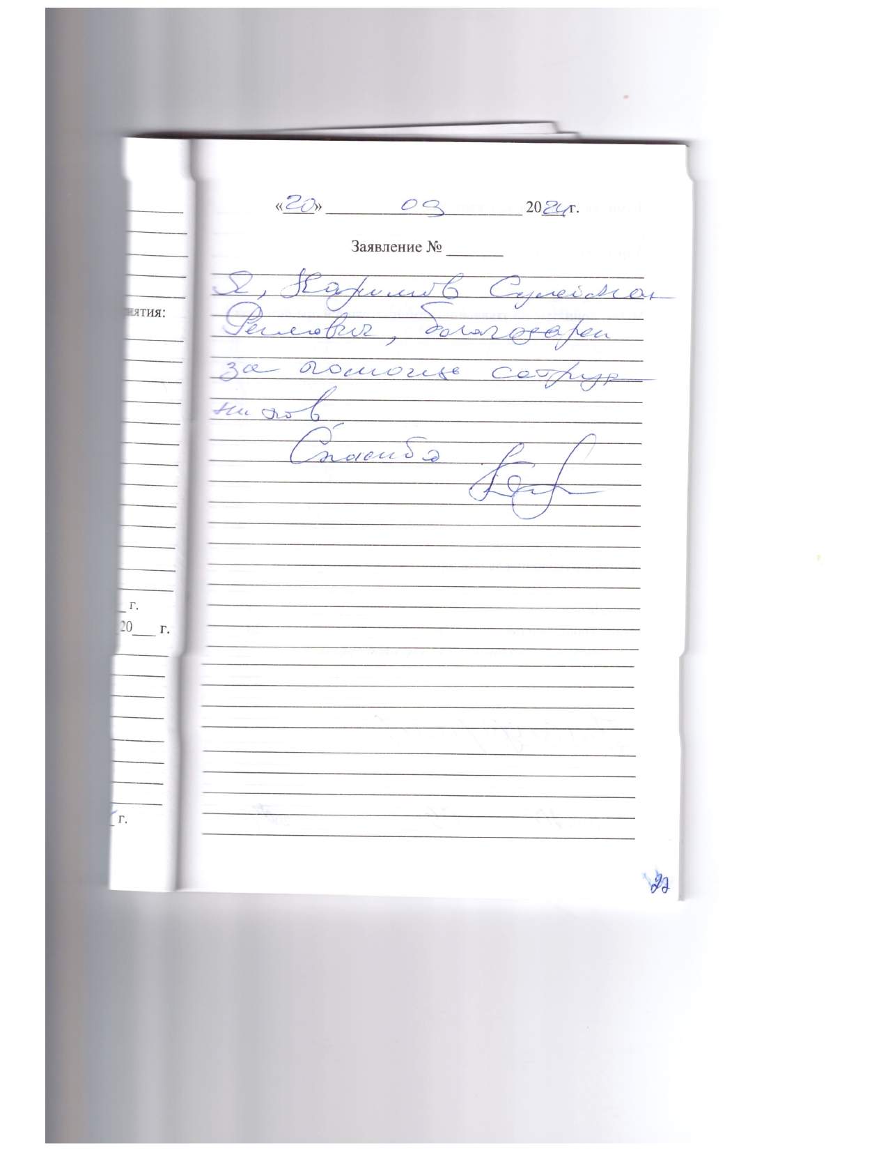 Я, Каримов Сулейман Римович, благодарен за помощь сотрудников. Спасибо