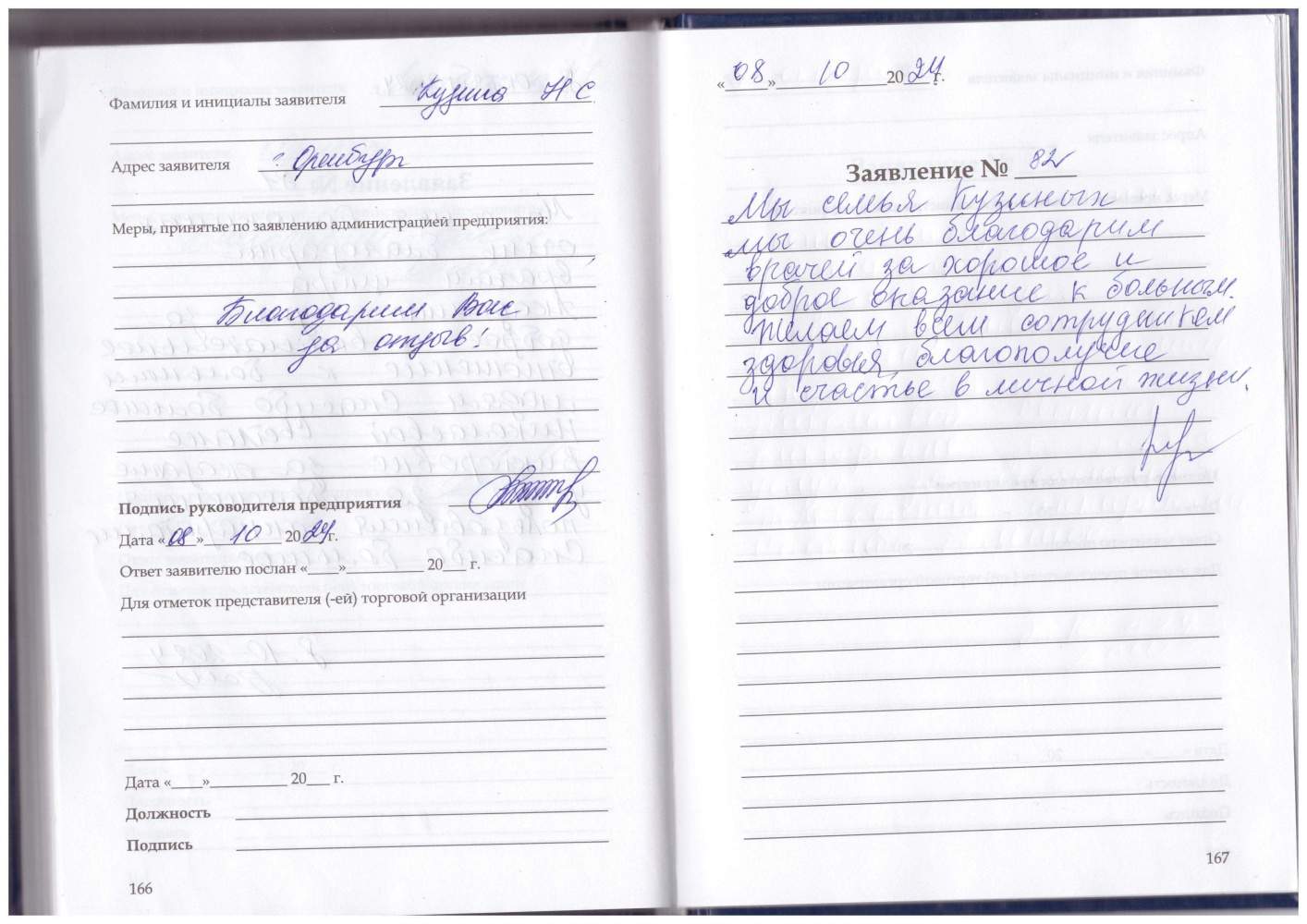 Мы семья Кузиных мы очень благодарим врачей за хорошее и доброе оказание к больным. Желаем всем сотрудникам здоровья, благополучия и счастье в личной жизни.