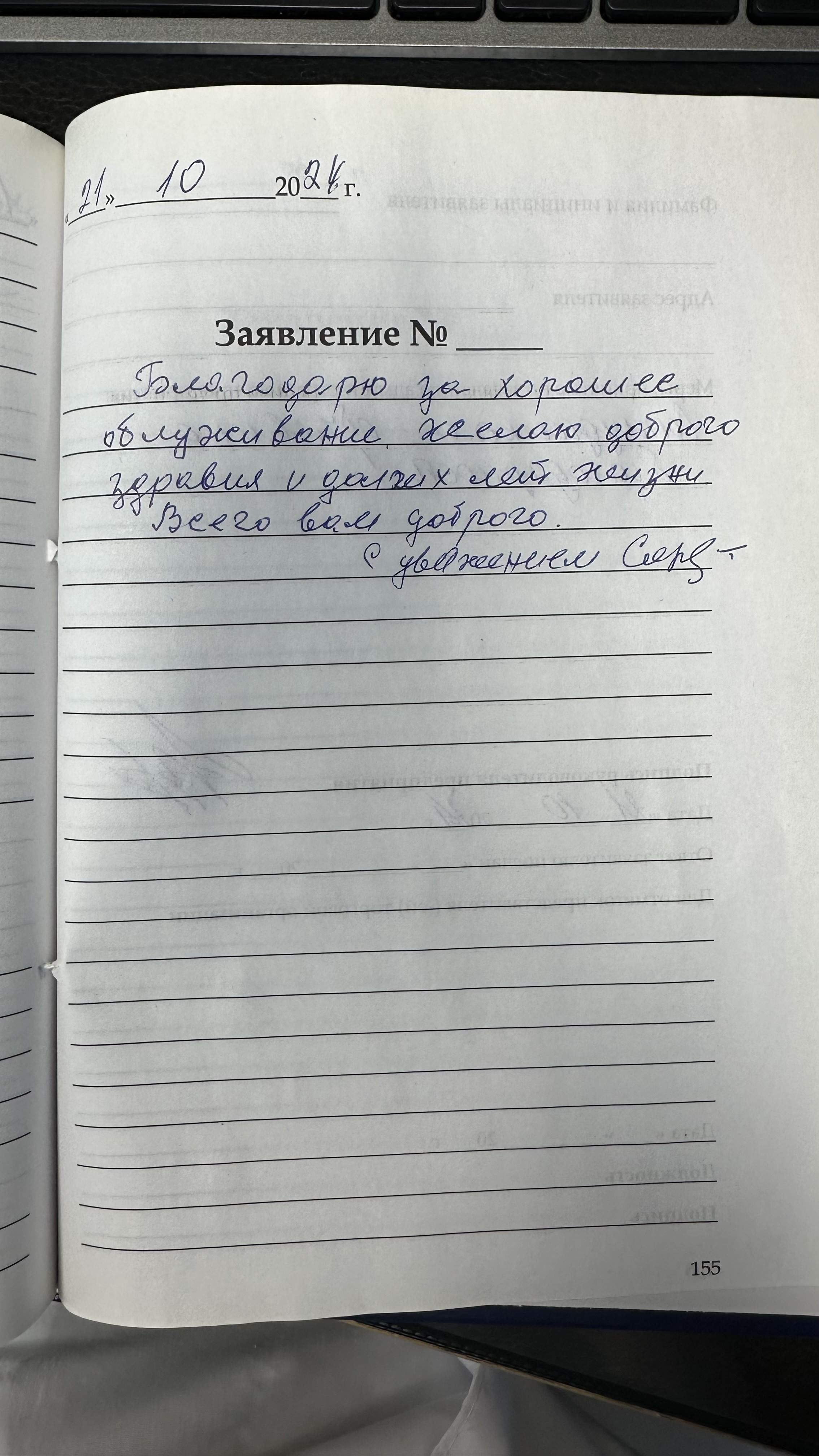 Благодарю за хорошее обслуживание. Желаю доброго здравия и долгих лет жизни. Всего вам доброго. С уважением, Соколова.