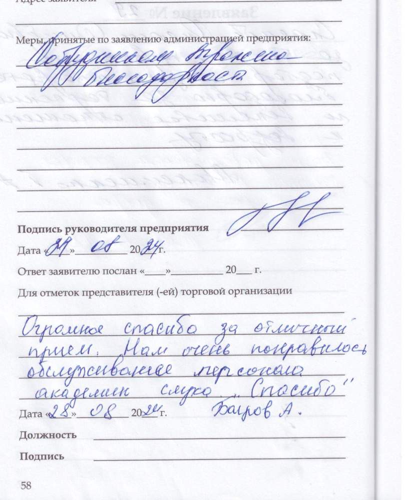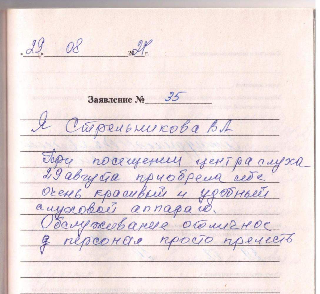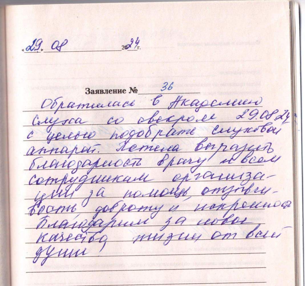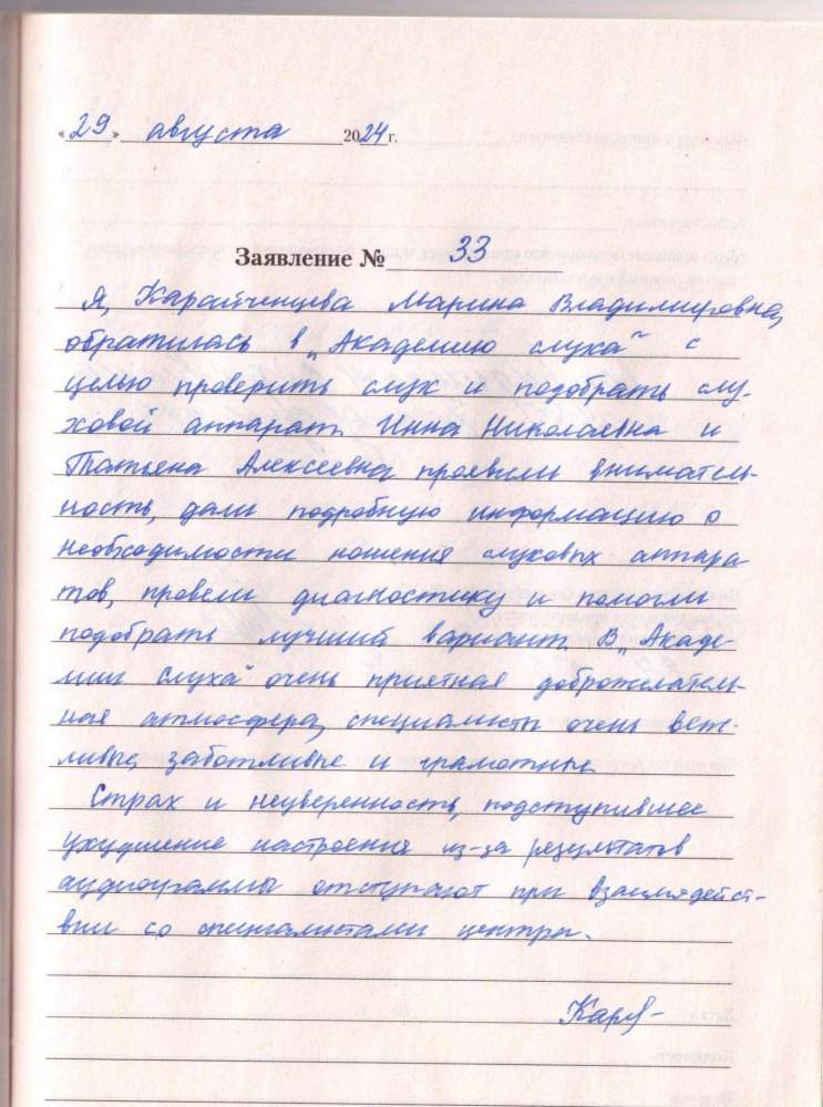 Огромное спасибо за отличный прием. Нам очень понравилось обслуживание персонала академии слуха. "Спасибо".