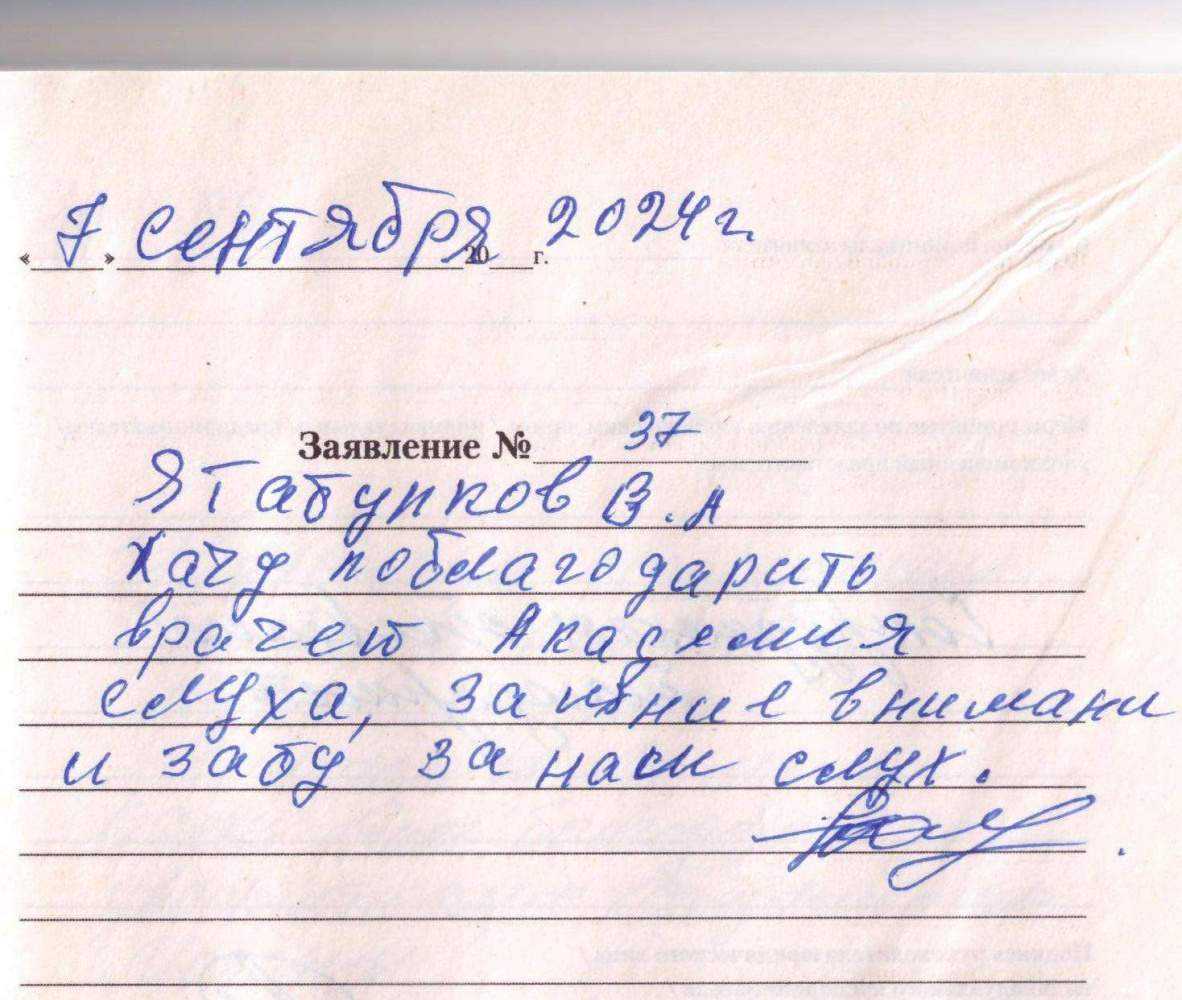 Я, Табунков В.А. хочу поблагодарить врачей Академия слуха, за их внимание и заботу за наш слух.