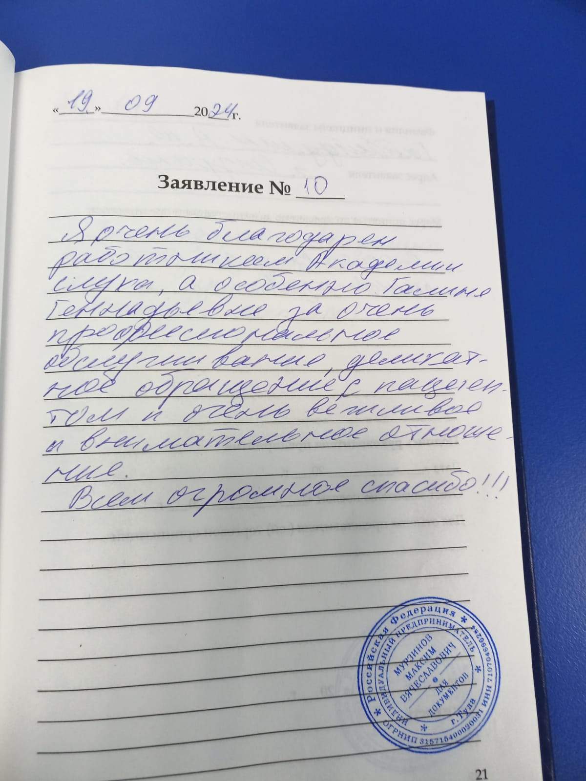 Хочу Выразить благодарность за прием, была надежда-сплона реальность. В следующий раз я только к Вам, по всем вопросам проконсультировали грамотно.