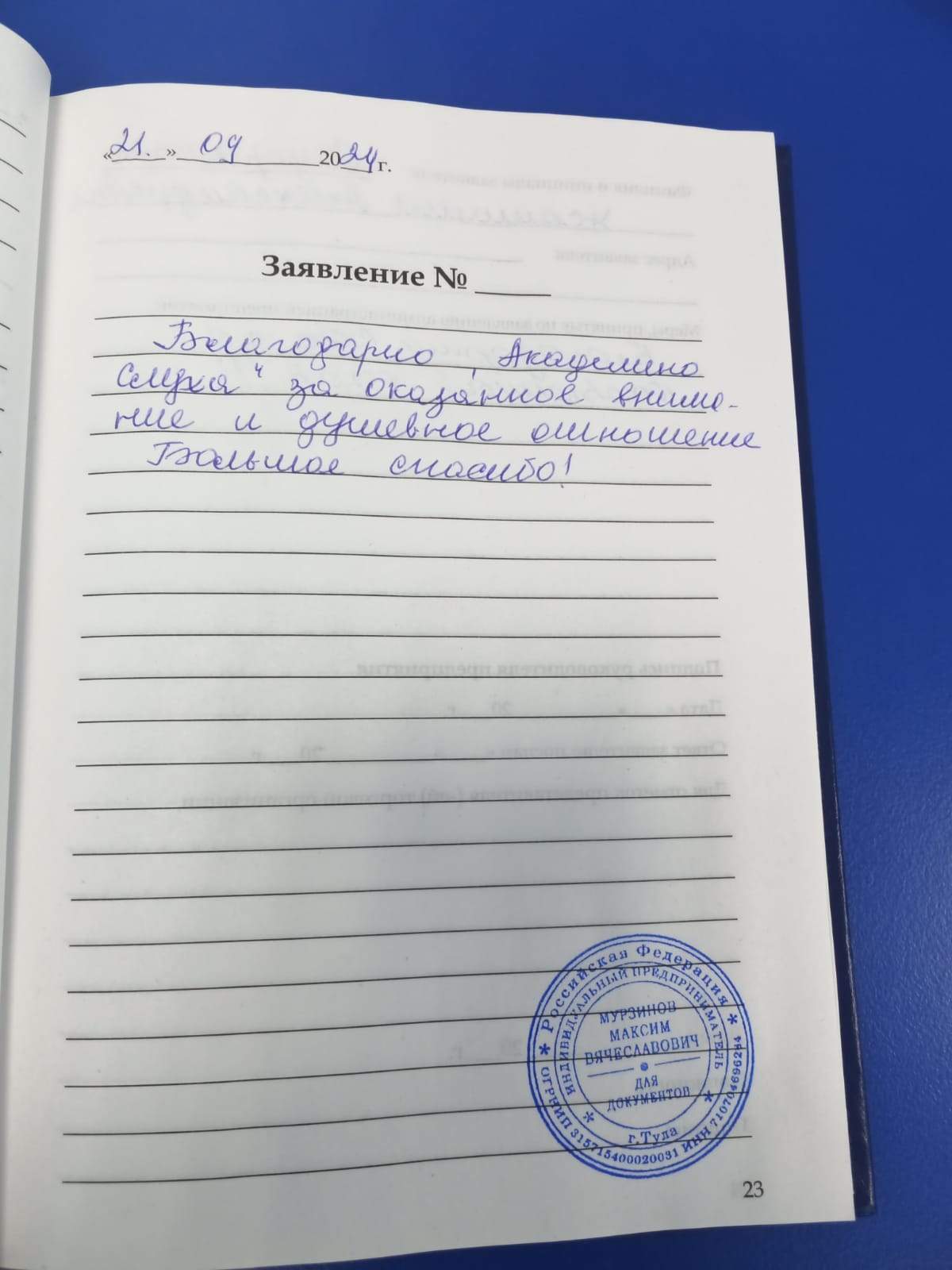 Благодарю "Академию слуха" за оказанное внимание и душевное отношение. Большое спасибо!