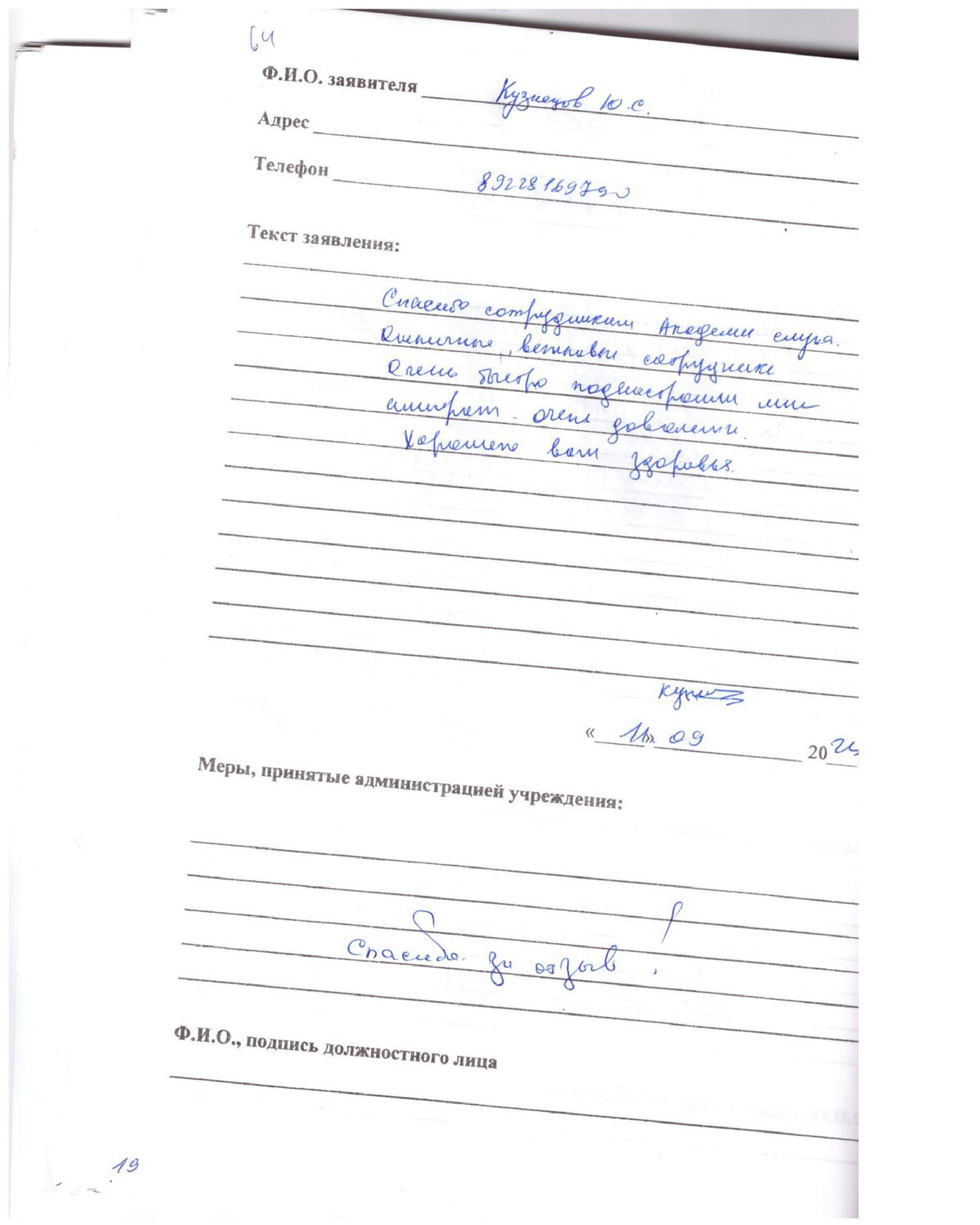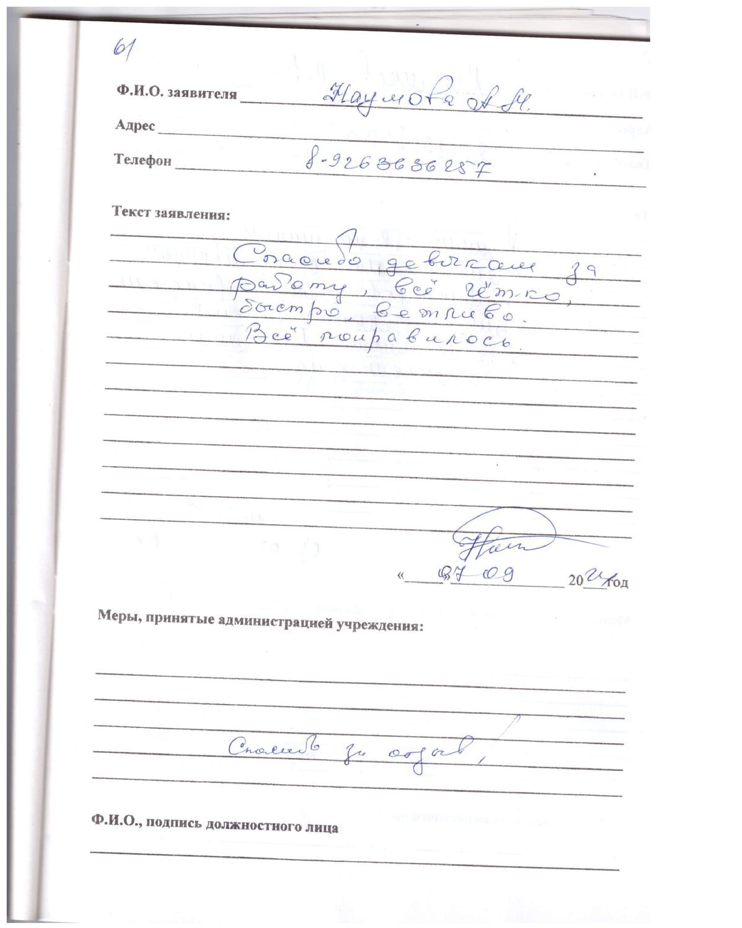 Большая сотрудникам благодарность ,за хорошую работу. Большое спасибо.