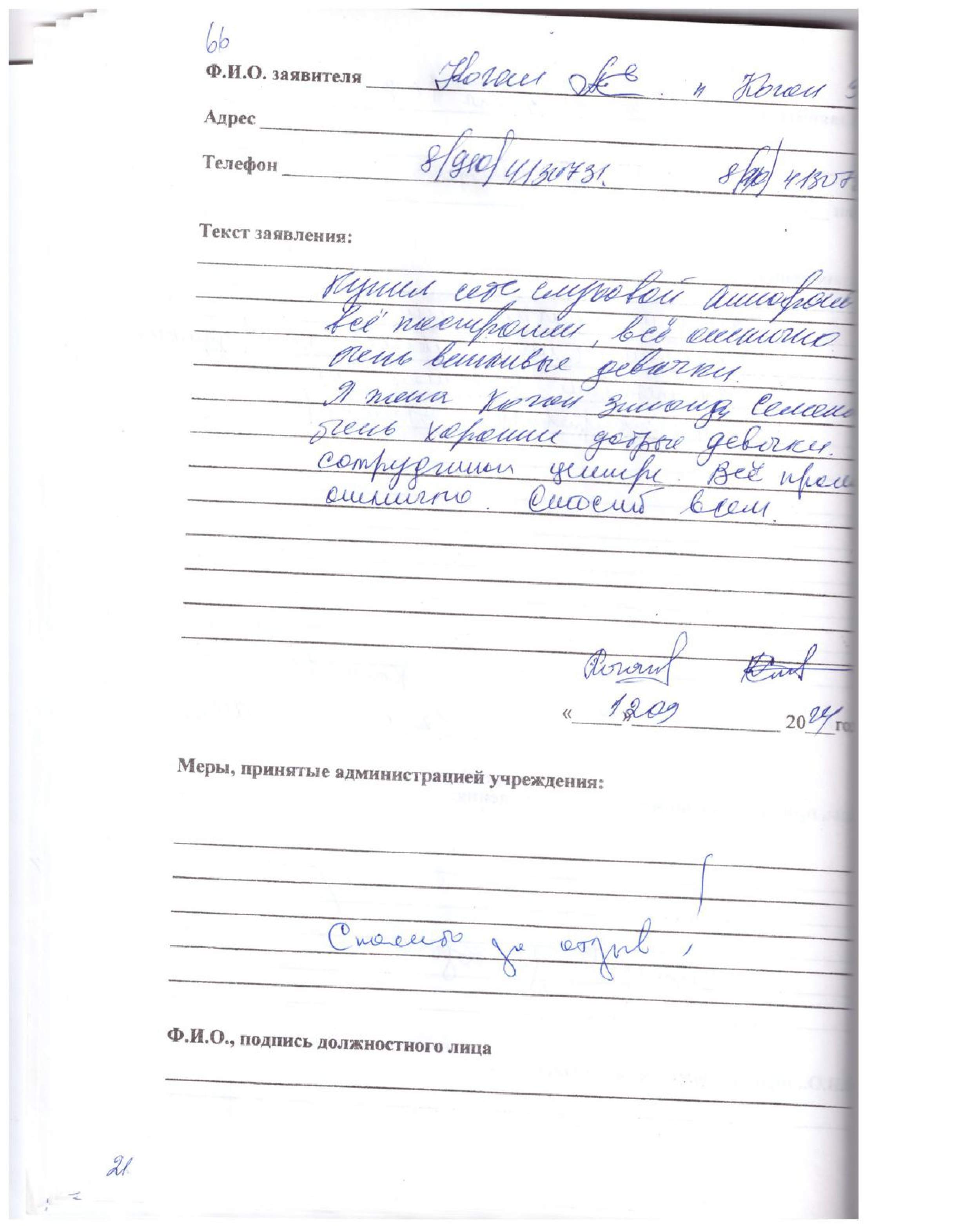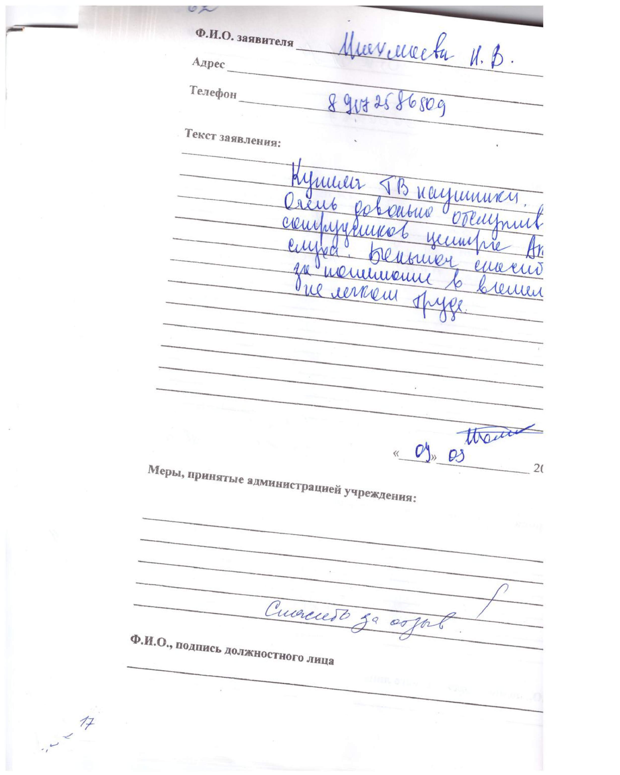 Спасибо за обслуживание, все хорошо, приятно было разговаривать.